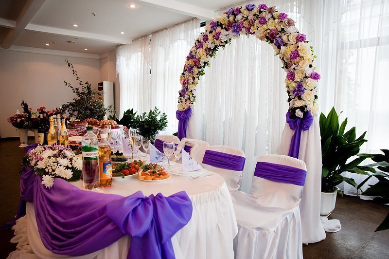 Por lo tanto, la decoración del salón de bodas es una combinación del concepto del estilo de celebración con las características individuales de los recién casados.