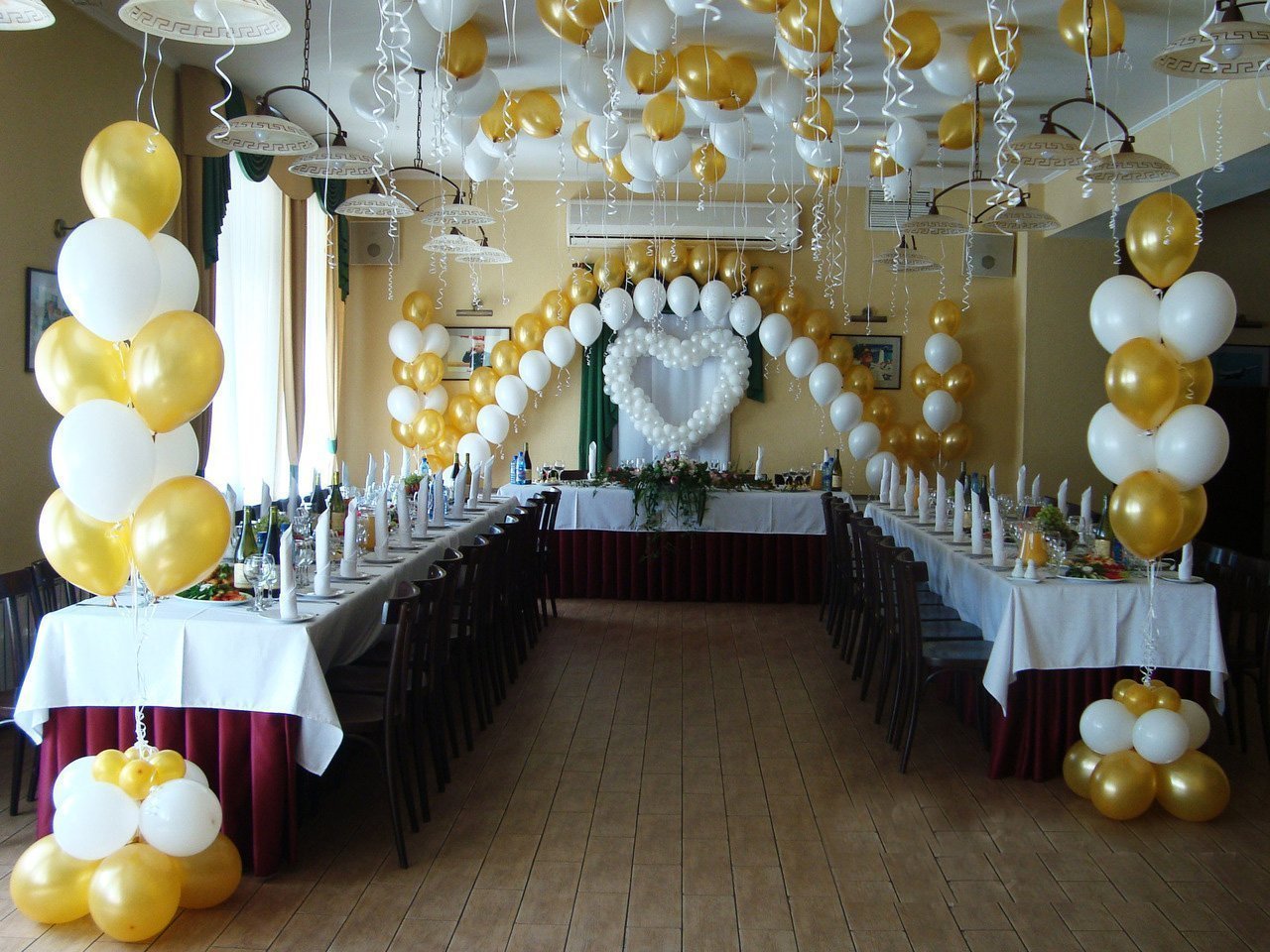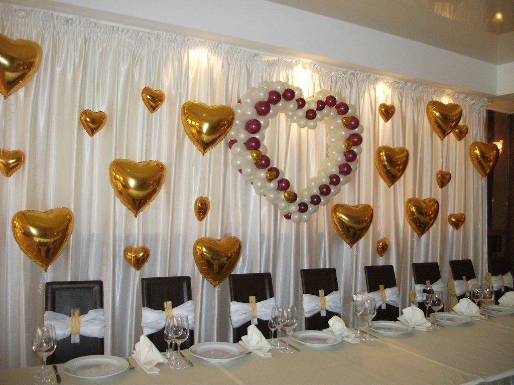 Por orden de las figuras están hechas de bolas, por ejemplo, flores, animales o siluetas de personas. Además, desde las bolas puedes hacer un arco de boda, que se complementa con flores y cintas. Tal arco puede ubicarse cerca de la entrada del restaurante, designar una zona de fotos o colocarse detrás del joven.