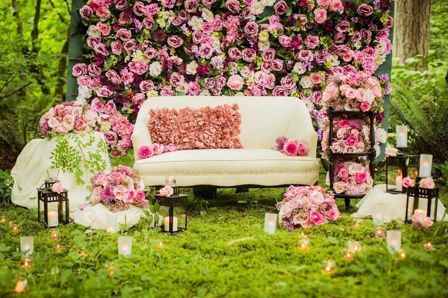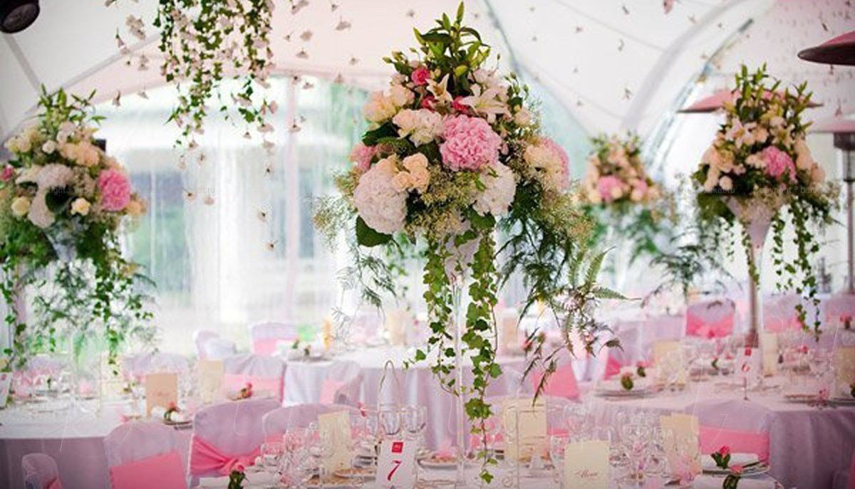 Las flores frescas son un atributo invariable de una boda. La novia los incluye en su ramo, y los invitados no tienen idea de cómo llegar a la celebración sin un ramo.Se pueden usar flores frescas para decorar el salón y crear una atmósfera especial de celebración. El tipo específico de planta se selecciona según las preferencias de la novia, así como en función del tema general de la celebración. Las flores se utilizan en el diseño de mesas para jóvenes e invitados, tejidas en un arco de boda o colocadas en macetas alrededor del perímetro del salón. Puede usar un tipo de planta o mezclar composiciones de campo y brotes exóticos.