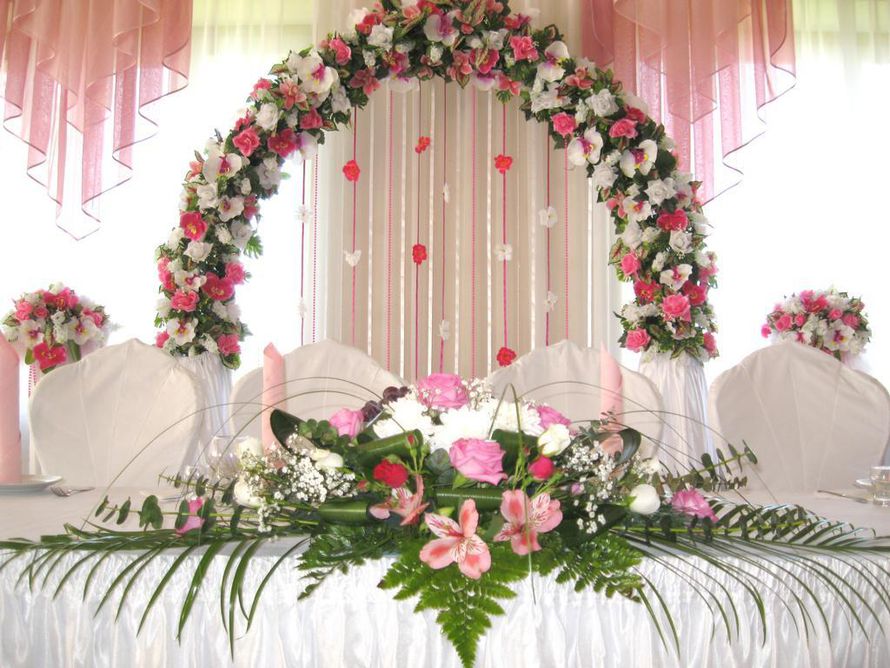 El arco de la boda se utiliza para realizar pinturas de visita o se coloca en el fondo de los jóvenes, en el momento del banquete. El arco está decorado con bolas, flores vivas, tela, figuras de papel.