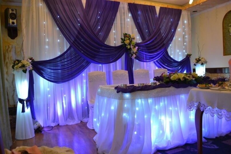 El uso de tela en el diseño del salón permite darle a la boda un cierto color. Dependiendo del tema de la boda, puede usar varios tipos de textiles, entre los cuales: