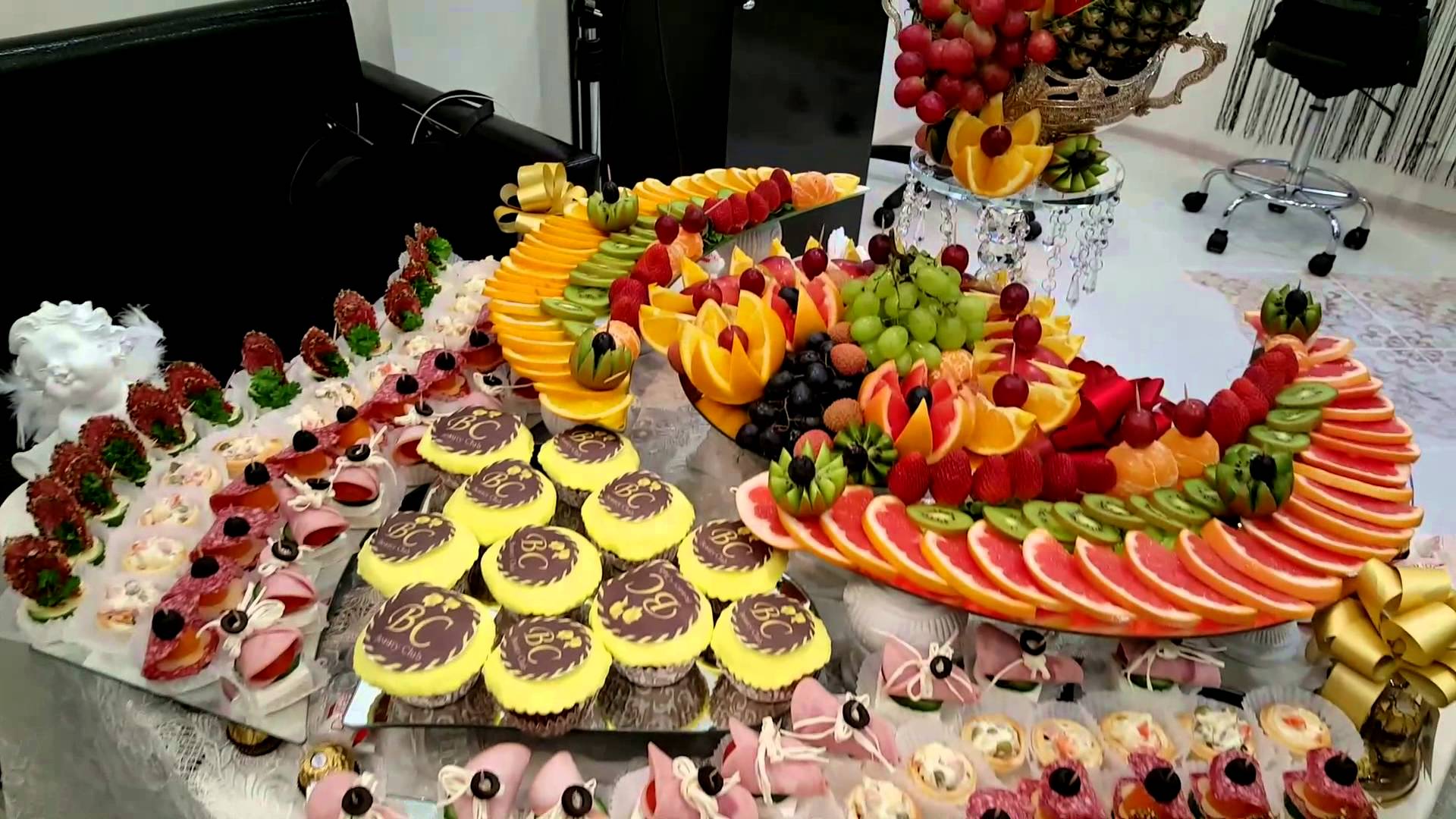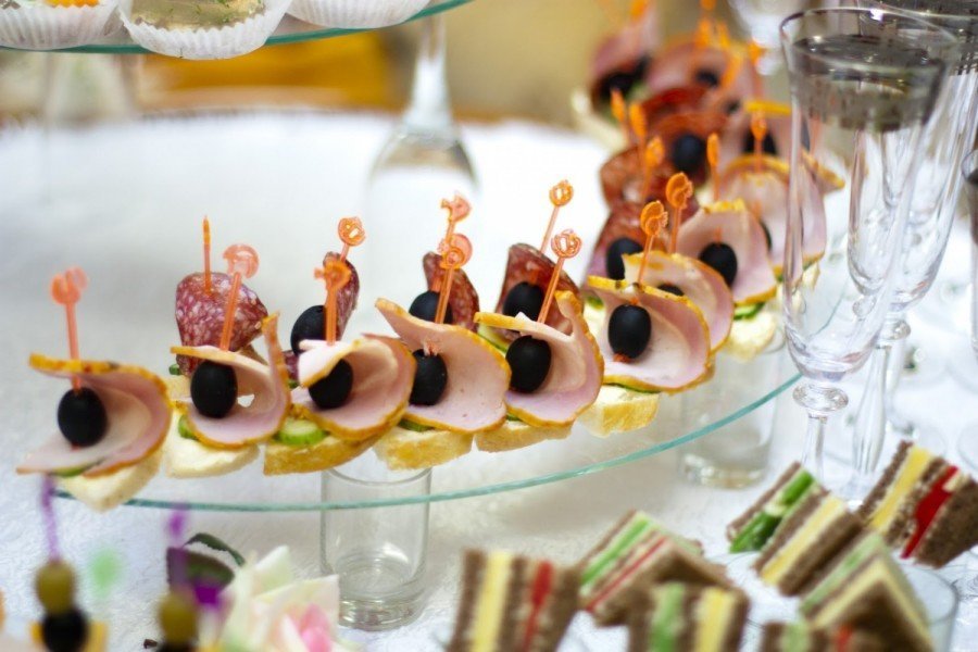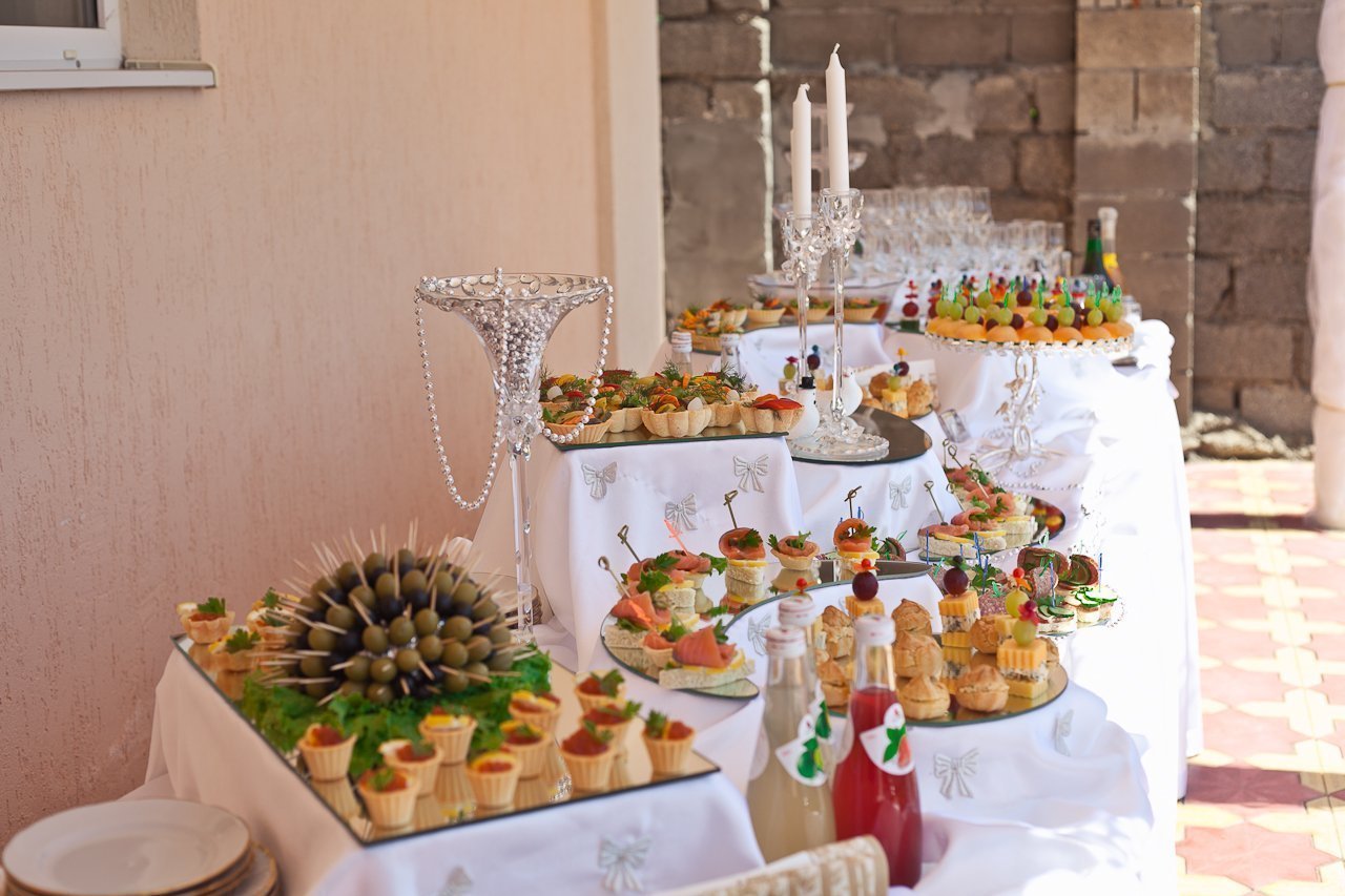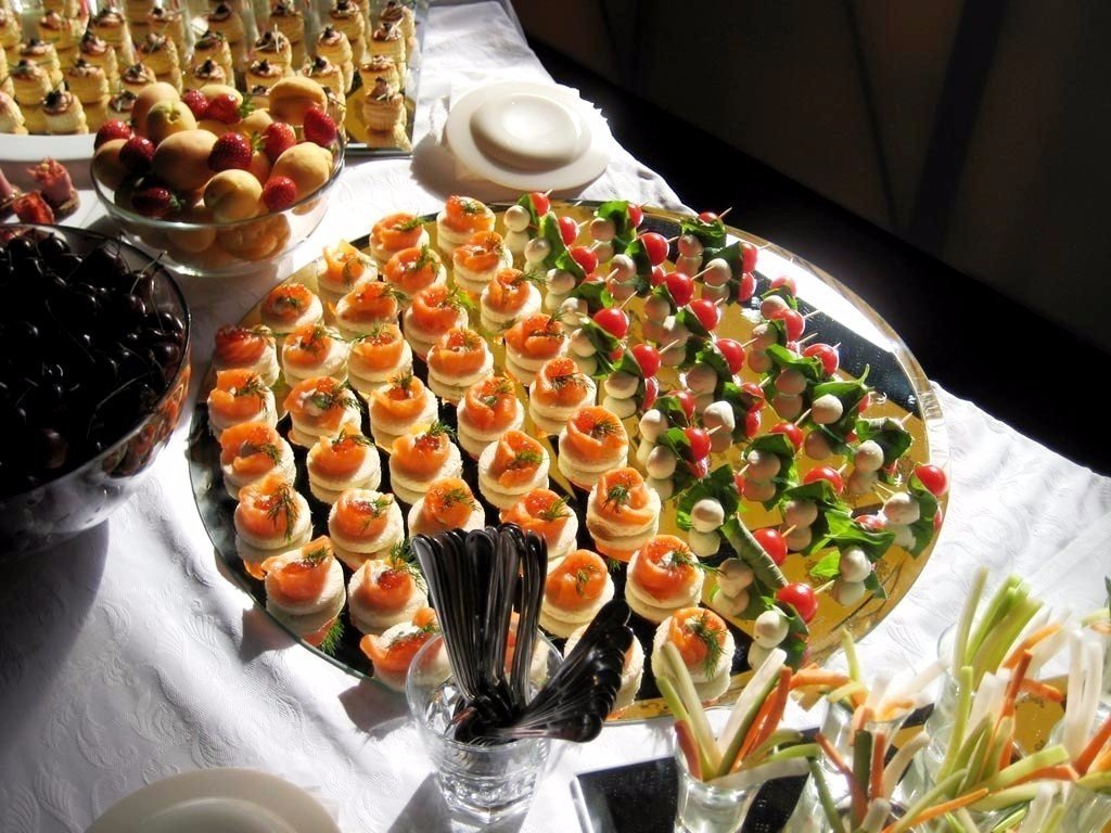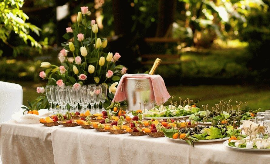La mesa del buffet está decorada de acuerdo con los mismos principios que una mesa de banquete normal. La única diferencia es que todos los atributos deben ser en miniatura para no saturar la tabla.Entonces, en lugar de un gran arreglo floral, es mejor poner un jarrón pequeño con un ramo original decorado. Los platos que se sirven como buffet deben corresponder al tema de la celebración. Por ejemplo, al organizar unas vacaciones al estilo ruso, en la mesa del buffet puede poner un samovar y bagels, panqueques, para ofrecer varios rellenos.