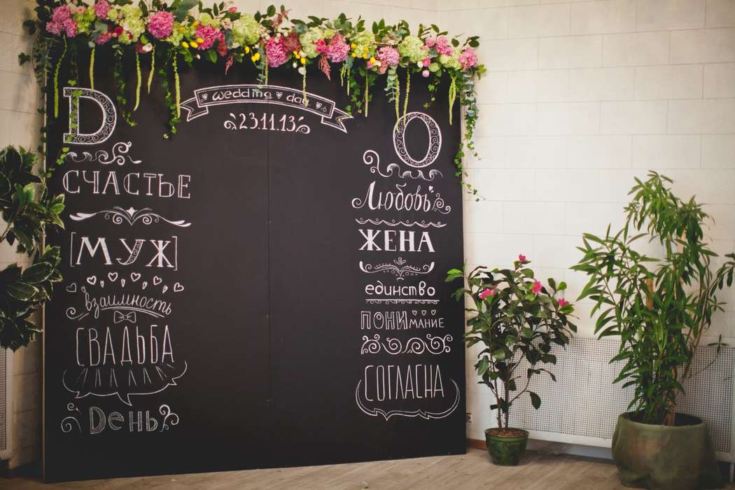 Las letras de yeso se venden en blanco puro, pero a pedido se pueden pintar en cualquier tono, incluido el elegido por el color principal de la boda. También puede colorear las letras usted mismo comprando pintura acrílica. Puede usar letras que simbolicen las iniciales de los nombres de los novios o comprar palabras preparadas u oraciones completas. Por ejemplo, en cada mesa puede ordenar las letras que componen las palabras "Boda de Ani y Pasha" o la frase "Felicidad para los jóvenes". También puede poner solo una letra de estas frases y luego anunciar un concurso para recopilar la propuesta completa.