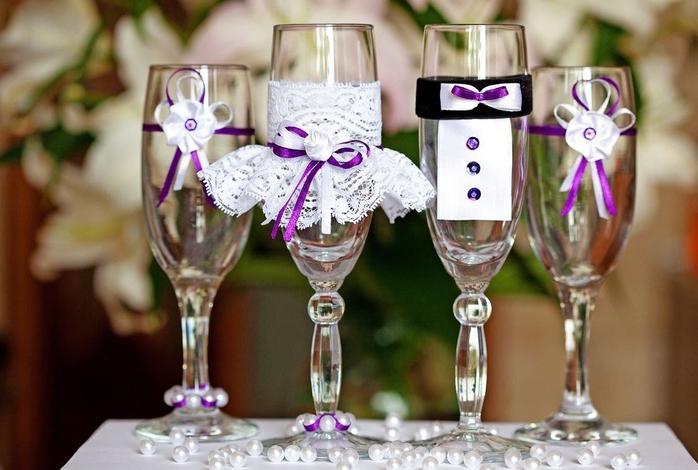 Para la boda necesitará tres pares de anteojos: para pintar, para los jóvenes y para los testigos. Para la decoración, necesita un conjunto muy pequeño de accesorios: