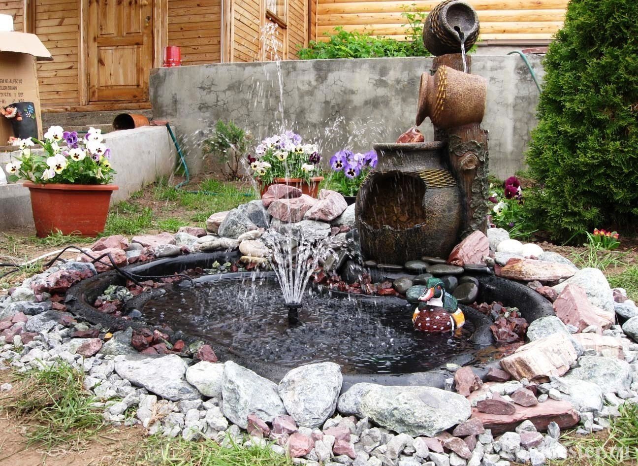 la base de una fuente o pequeña cascada;