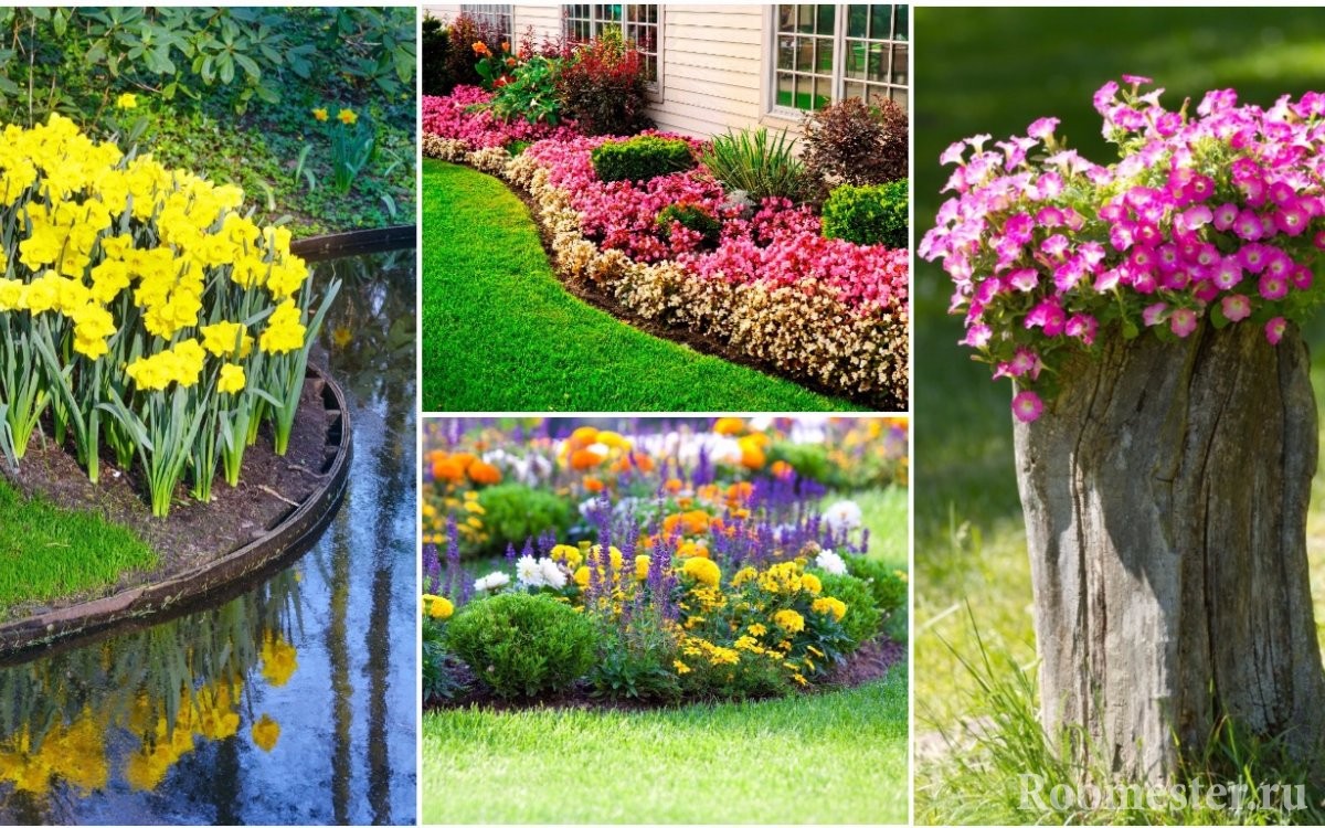 El enmarcado de tablones de recipientes de flores hechos de plástico, estaño o recipientes esmaltados le permitirá eliminar las inconsistencias del jardín y llevar toda la decoración a un denominador de estilo.