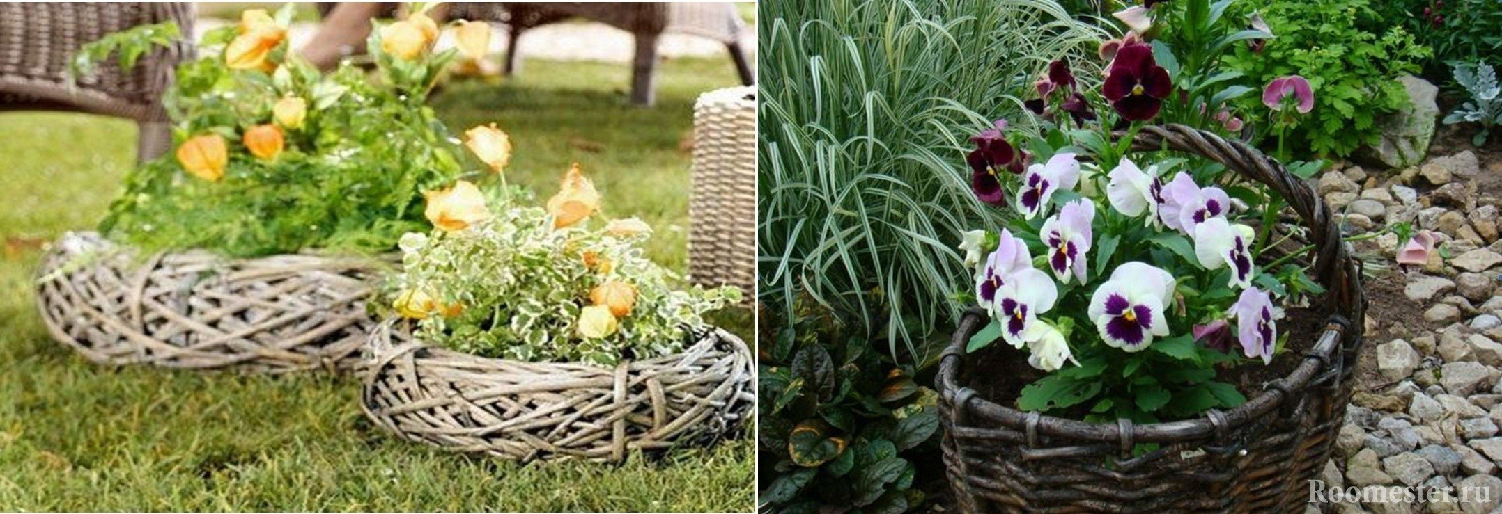 cestas y cajas, como lugar de almacenamiento para suministros de jardinería;