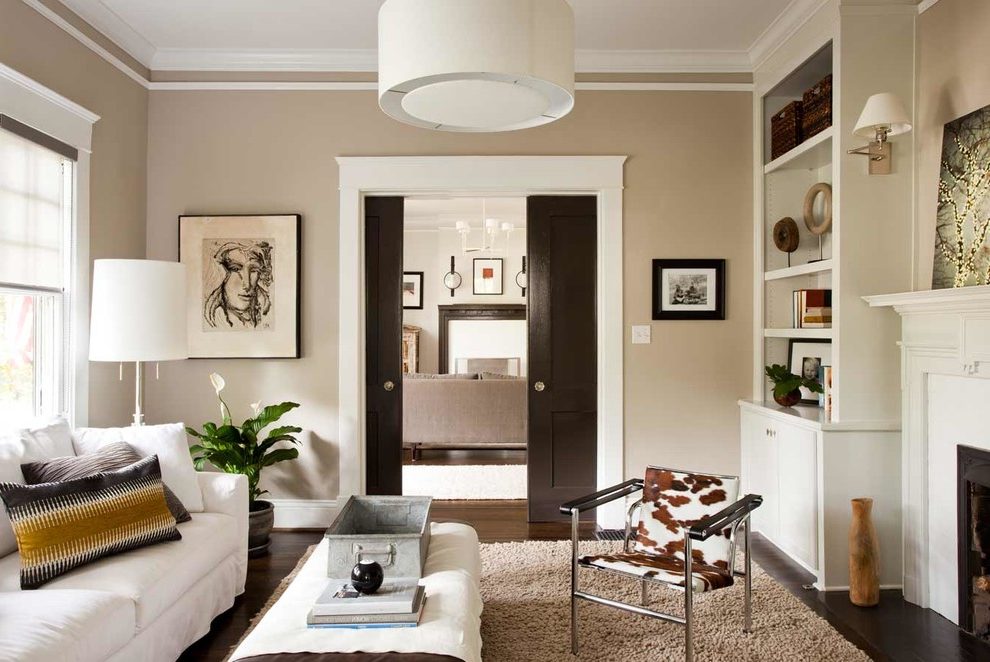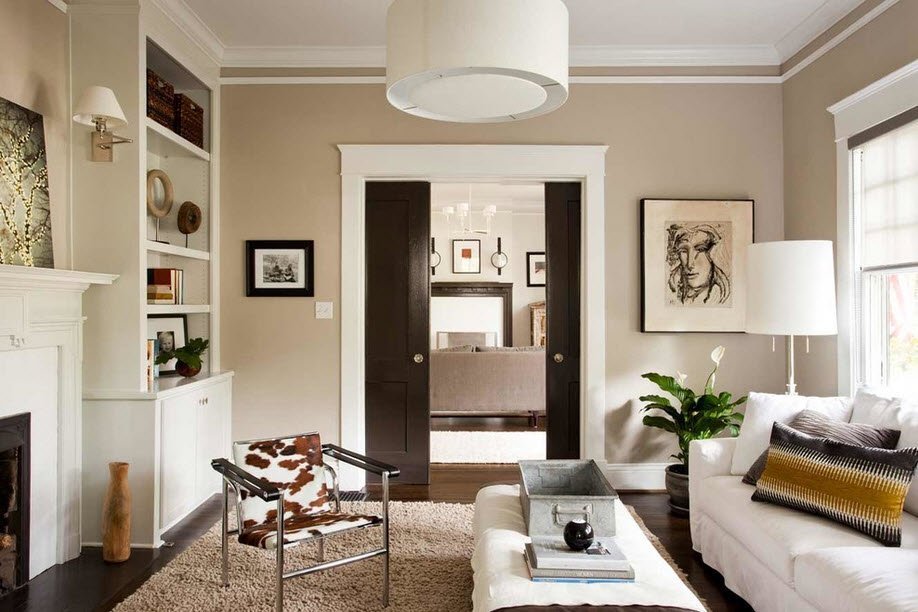 Incluso en los viejos tiempos, la casa de huéspedes era famosa por hogares de piedra y puertas de madera con soportes pesados. Necesariamente oscuros, tonos marrones, desde las paredes hasta las puertas, incluso las escaleras que conducían a las habitaciones de los invitados eran abundantes, de color oscuro. Porque las puertas negras, gris-negras en la sala de estar, como diría el clásico, "La verdadera voz de la historia". Con catálogos modernos de los principales diseñadores mundiales, las salas de estar han adquirido imágenes mejores y reflexivas, la presencia de nuevos colores. Se permiten murales brillantes y una otomana amarilla, escarlata, en una pierna delgada, una lámpara de pie. Debido a la sala de estar con el telón de fondo de puertas negras, hoy es una habitación luminosa y cómoda donde es agradable invitar a amigos.