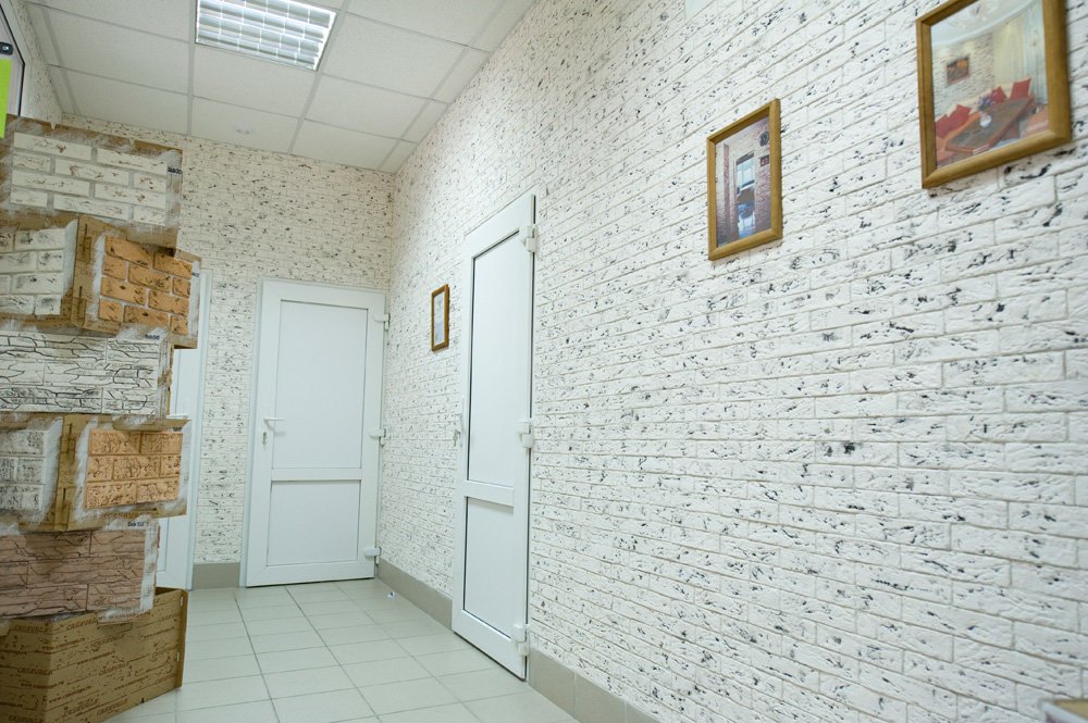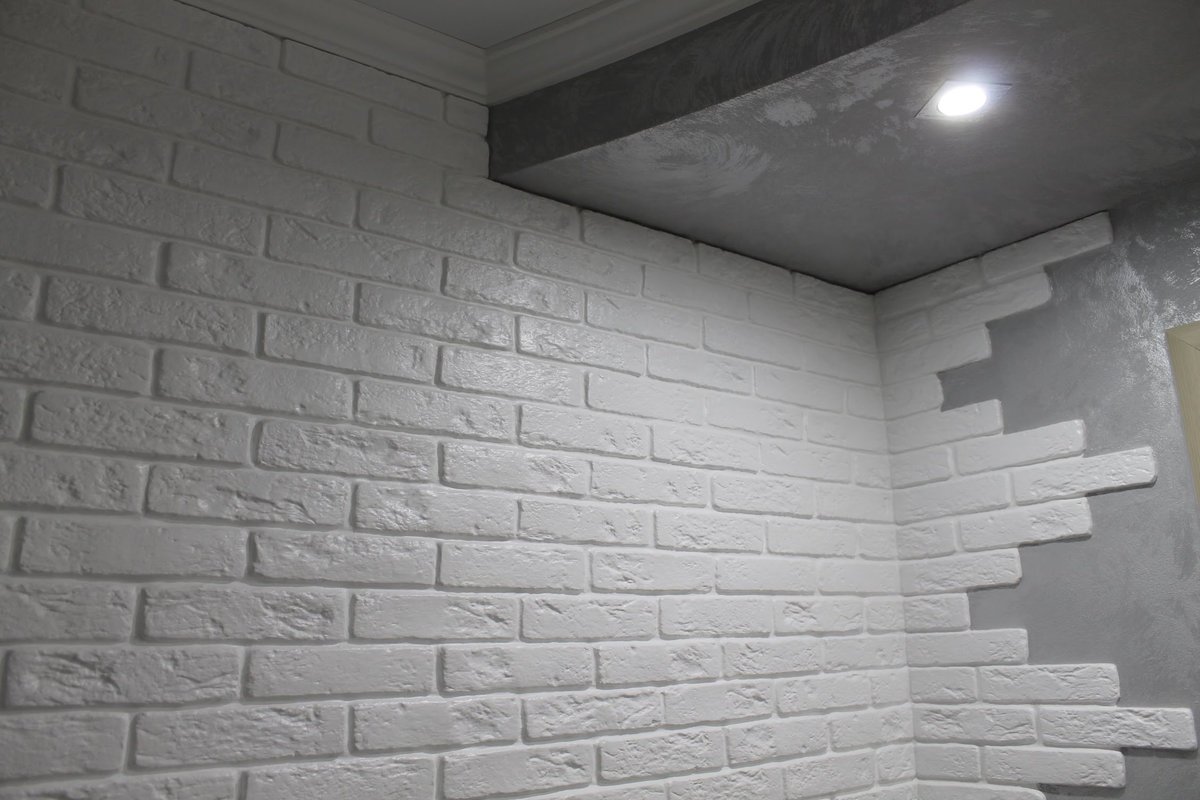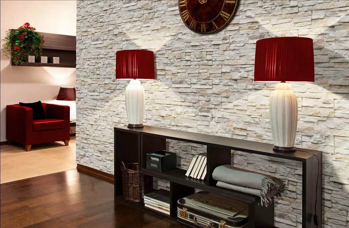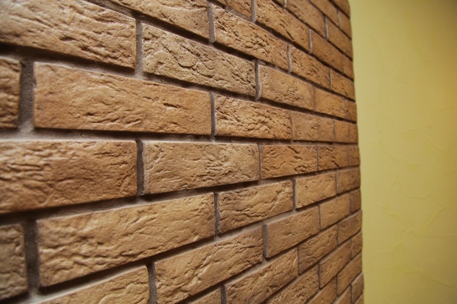 imitación de ladrillo: un grosor insignificante le permite encajarlo perfectamente en espacios pequeños, decorar aberturas y áreas separadas de la sala o cocina - bar, televisión. No menos impresionante es el aspecto similar en habitaciones espaciosas;
