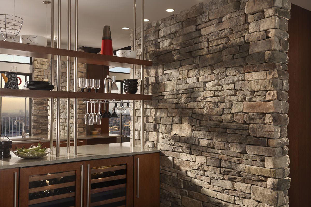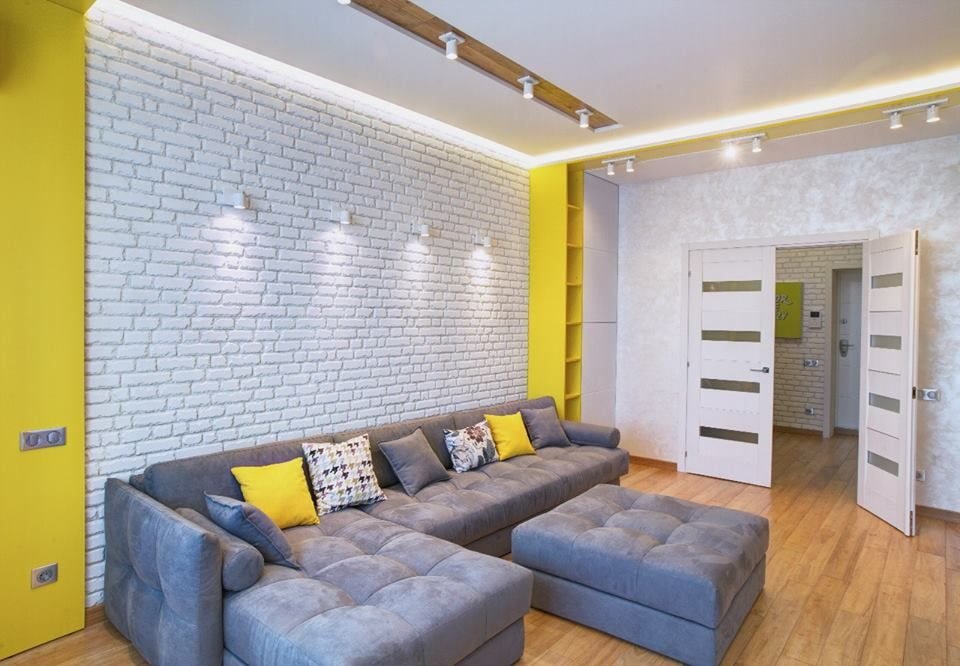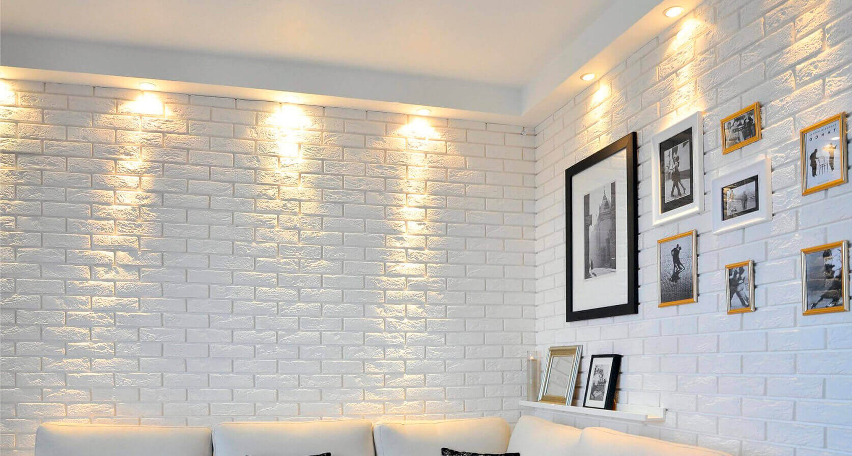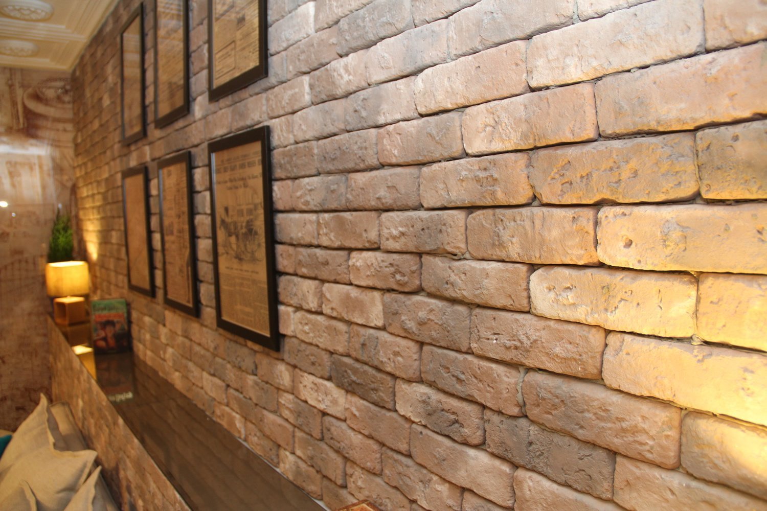 imitación de ladrillo: un grosor insignificante le permite encajarlo perfectamente en espacios pequeños, decorar aberturas y áreas separadas de la sala o cocina - bar, televisión. No menos impresionante es el aspecto similar en habitaciones espaciosas;