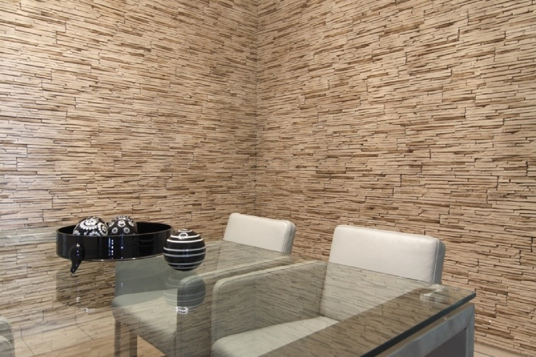 Al decorar paredes o techos con este material, se debe observar moderación. Un acabado fragmentado se verá más texturizado. Será especialmente efectivo contra una superficie lisa. Si pega toda la pared con azulejos, perderá su expresividad, se verá demasiado pesada y poco interesante. Por lo tanto, es mejor limitarse a uno o más acentos que harán el ambiente de todo el interior.
