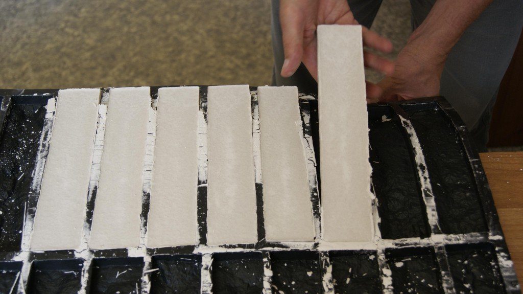 Nos secamos durante 24 horas, después de lo cual retiramos cuidadosamente el azulejo terminado del molde y lo dejamos secar por completo, evitando la exposición a la luz solar. Las condiciones creadas en una cámara de secado especial pueden reducir significativamente el tiempo y mejorar la calidad de este proceso.