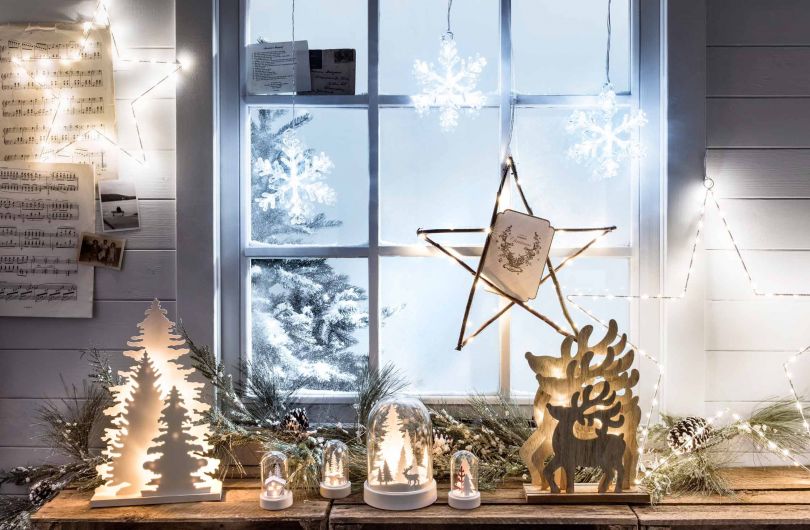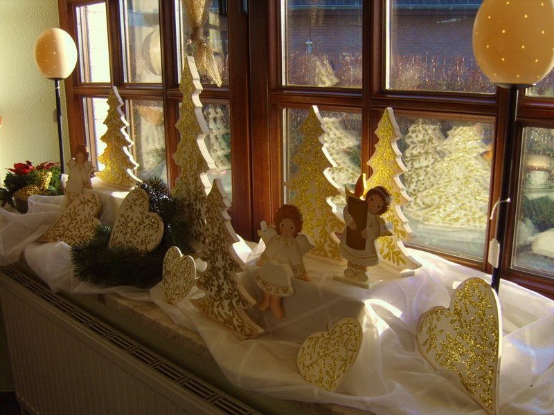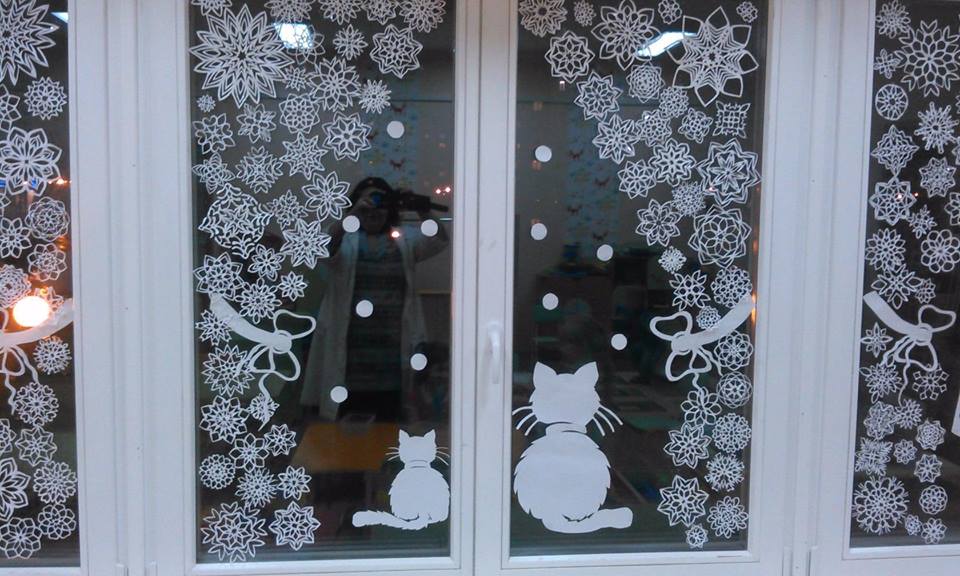 Las ventanas Las lámparas de forma inusual se verán inusuales. Las estrellas, los copos de nieve y los triángulos se pueden unir a la ventana o bajar del marco superior al alféizar de la ventana;