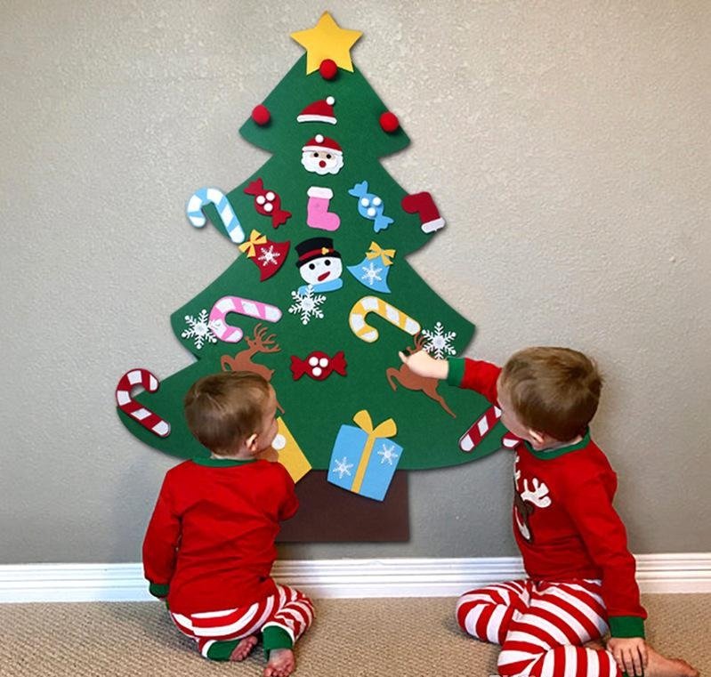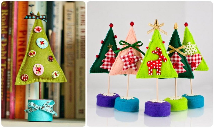 Fieltro Puede coser un símbolo del próximo año, pequeños árboles de Navidad, copos de nieve;