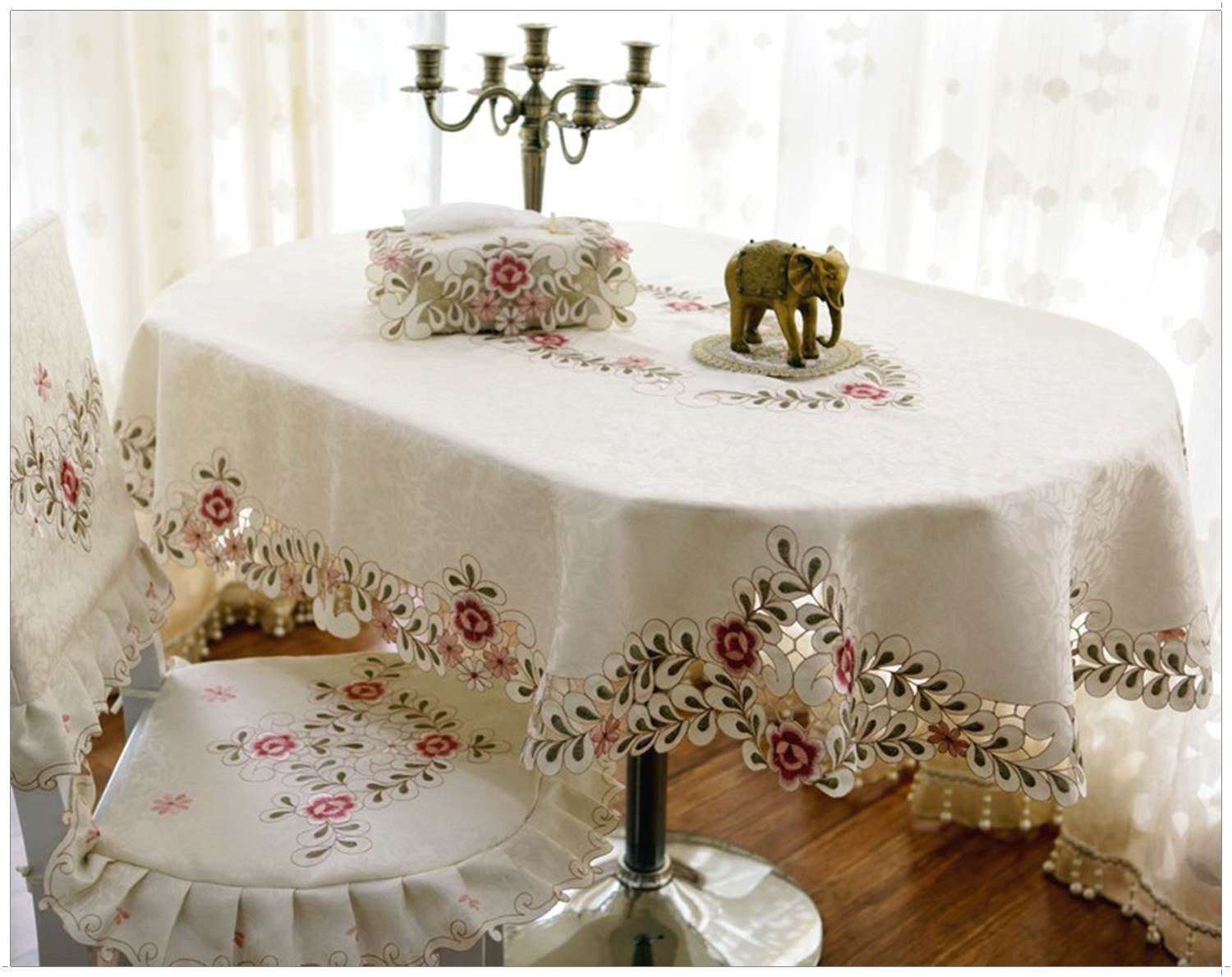 Lo principal es que el mantel recibe a los invitados, brillando con casta pureza y frescura. Los pliegues y arrugas son inaceptables. Un mantel perfectamente planchado es el orgullo de cualquier ama de casa y un elemento indispensable de una porción ideal. Los bordes del producto deben colgar 25-30 cm.