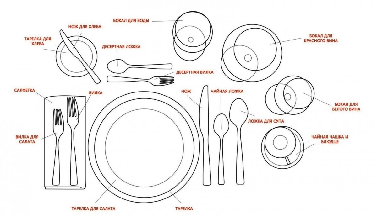 ¿Crees que lidiar con los cubiertos es tan difícil como dominar la alfabetización china? Y no! Todo es muy sencillo. Se colocan tenedores y cuchillos a ambos lados del plato. Los cuchillos siempre están del lado derecho. Su punta está dirigida al plato. Aquí colocan una cuchara para sopa con la nariz hacia arriba. Las horquillas se encuentran en el lado izquierdo de la placa, cuyos dientes se dirigen al techo.