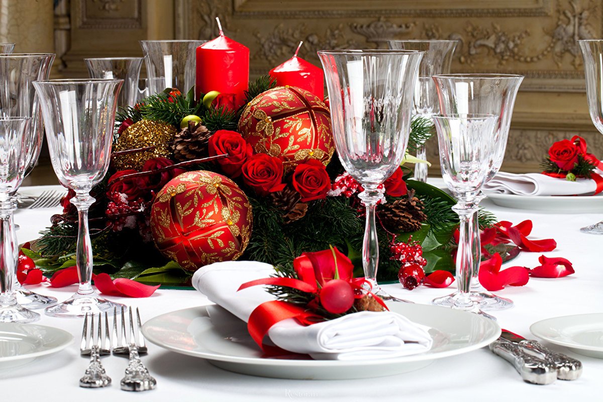 Los accesorios en la mesa festiva le darán a la celebración un entusiasmo especial, lo harán inolvidable. Pero trate de usarlos con moderación: una gran cantidad de decoración puede interferir con la disposición conveniente y correcta de los platos, la descomposición de los electrodomésticos.