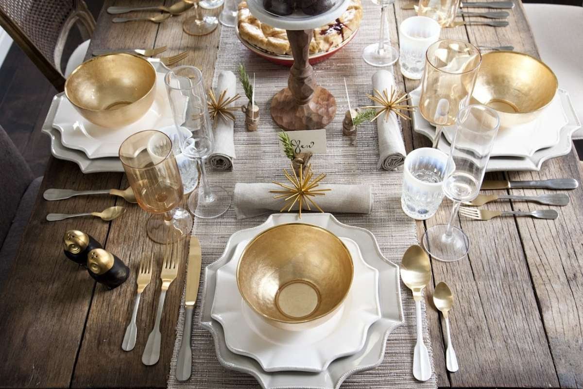 La decoración de la mesa en estilo escandinavo es una opción universal. Las características principales de este tipo de servicio son el uso de formas y líneas simples y el predominio de materiales y texturas naturales. Los accesorios de madera en bruto, como soportes de platos, candelabros, son apropiados aquí. Los textiles son solo naturales: lino, yute. Este diseño es adecuado para absolutamente cualquier día festivo, pero el pico alcanza su popularidad en Navidad.El hecho es que, de acuerdo con las tradiciones escandinavas, el centro de la mesa ciertamente debe estar decorado con una composición de flores, complementado con coníferas y ramas naturales, y en el mantel y las servilletas puede haber patrones noruegos que se hacen en forma de copos de nieve, árboles de Navidad, venados.