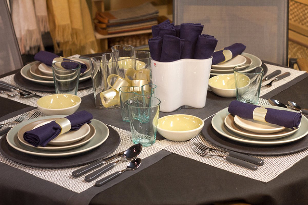 en un cierto estilo, dependiendo de la orientación del estilo de la habitación. Es ridículo organizar exquisitas separaciones de porcelana con bordes dorados y de encaje en una mesa de madera deliberadamente áspera. Los platos cuadrados para sushi o platos con pintura Khokhloma son igualmente inapropiados en el rococó clásico.