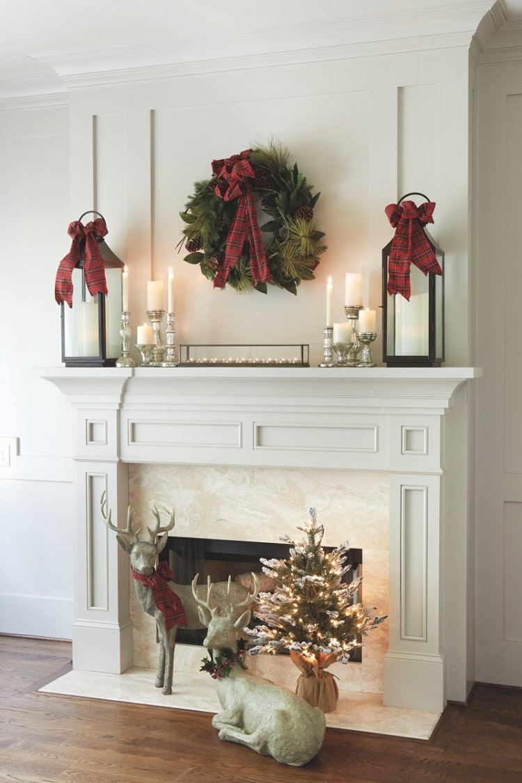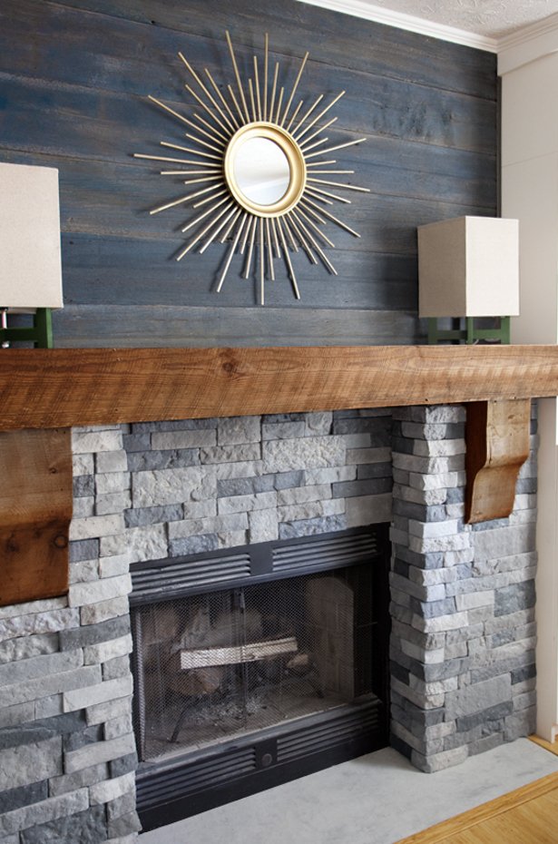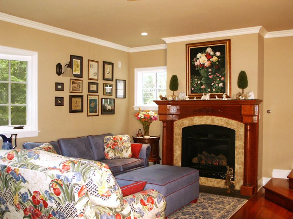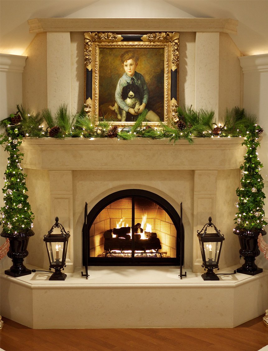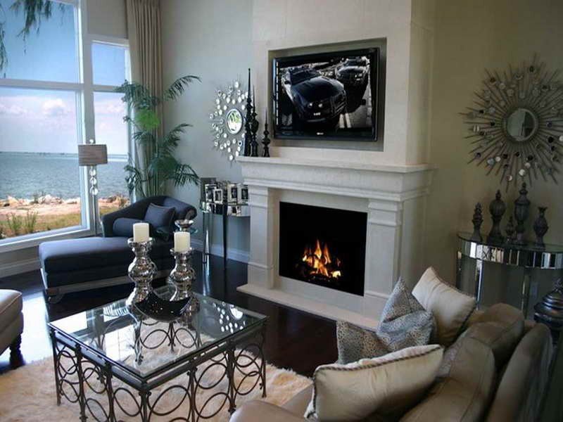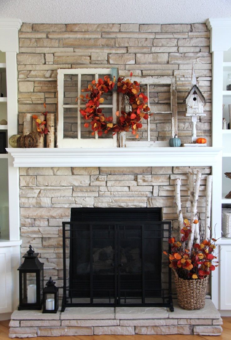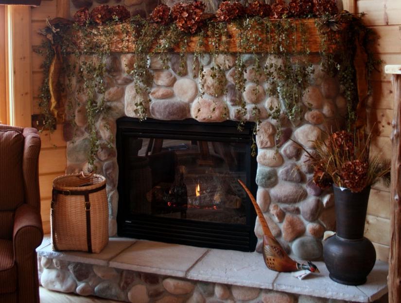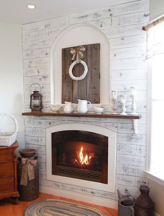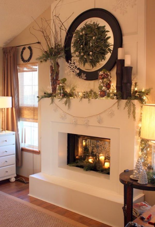 El lugar cerca de la chimenea está decorado de varias maneras encima: