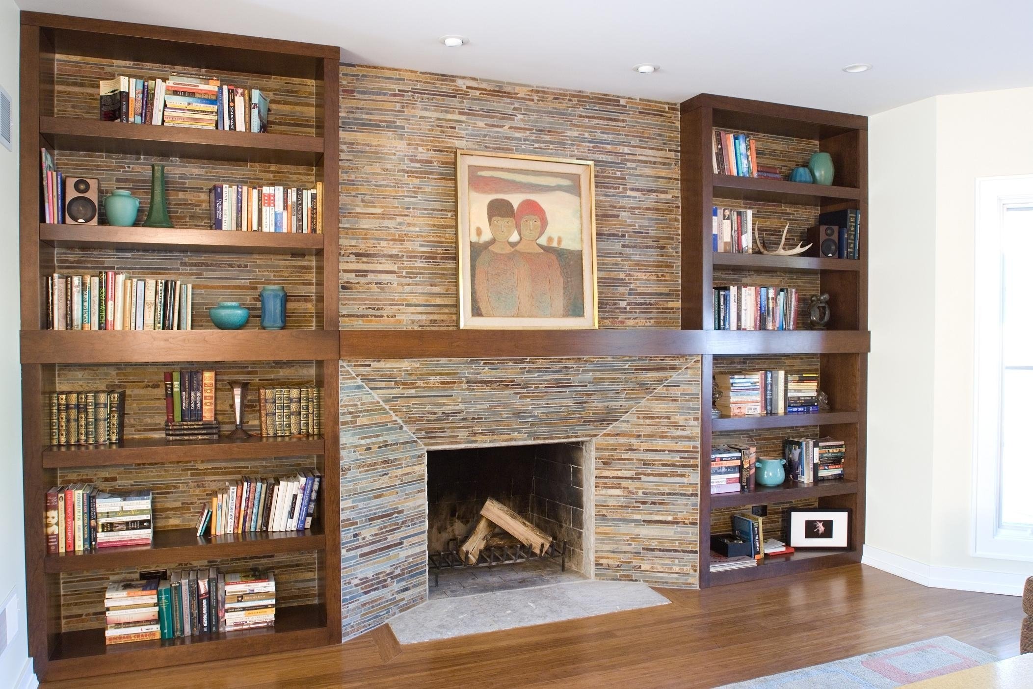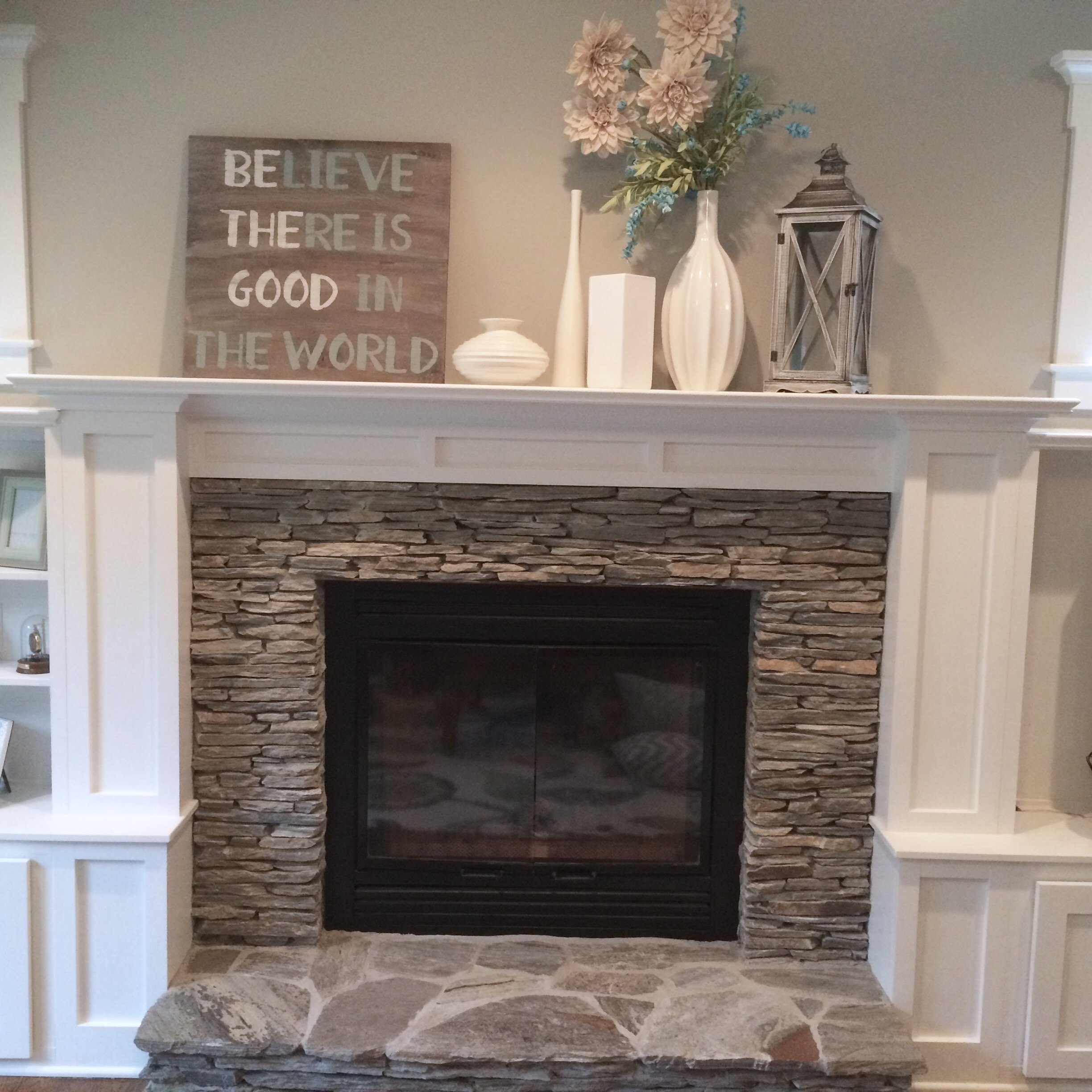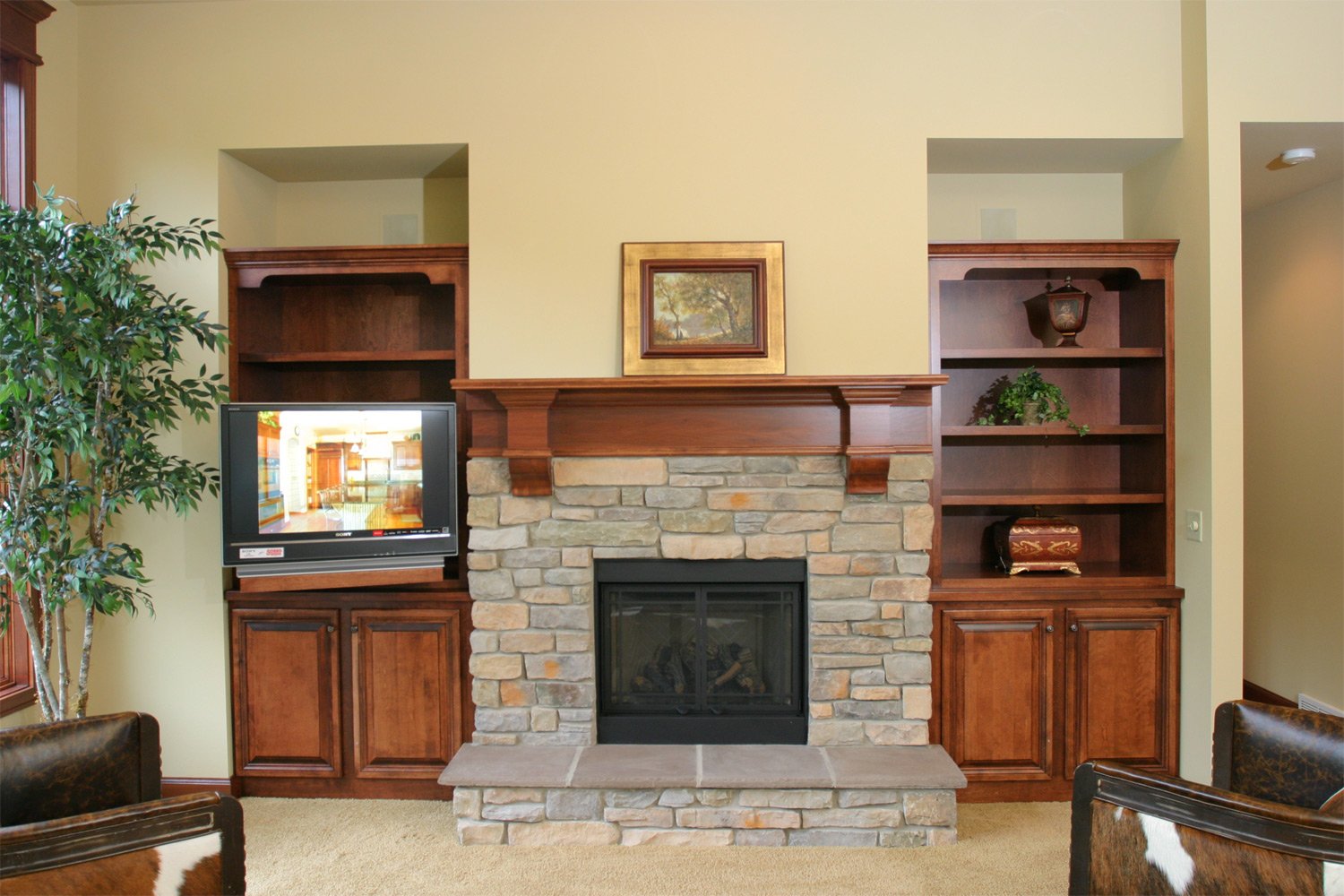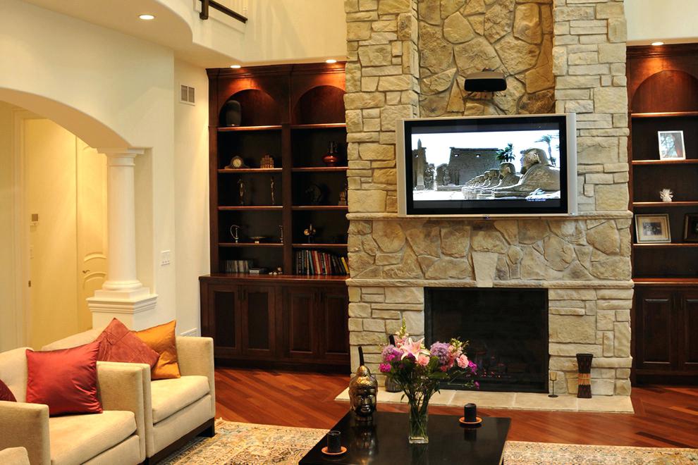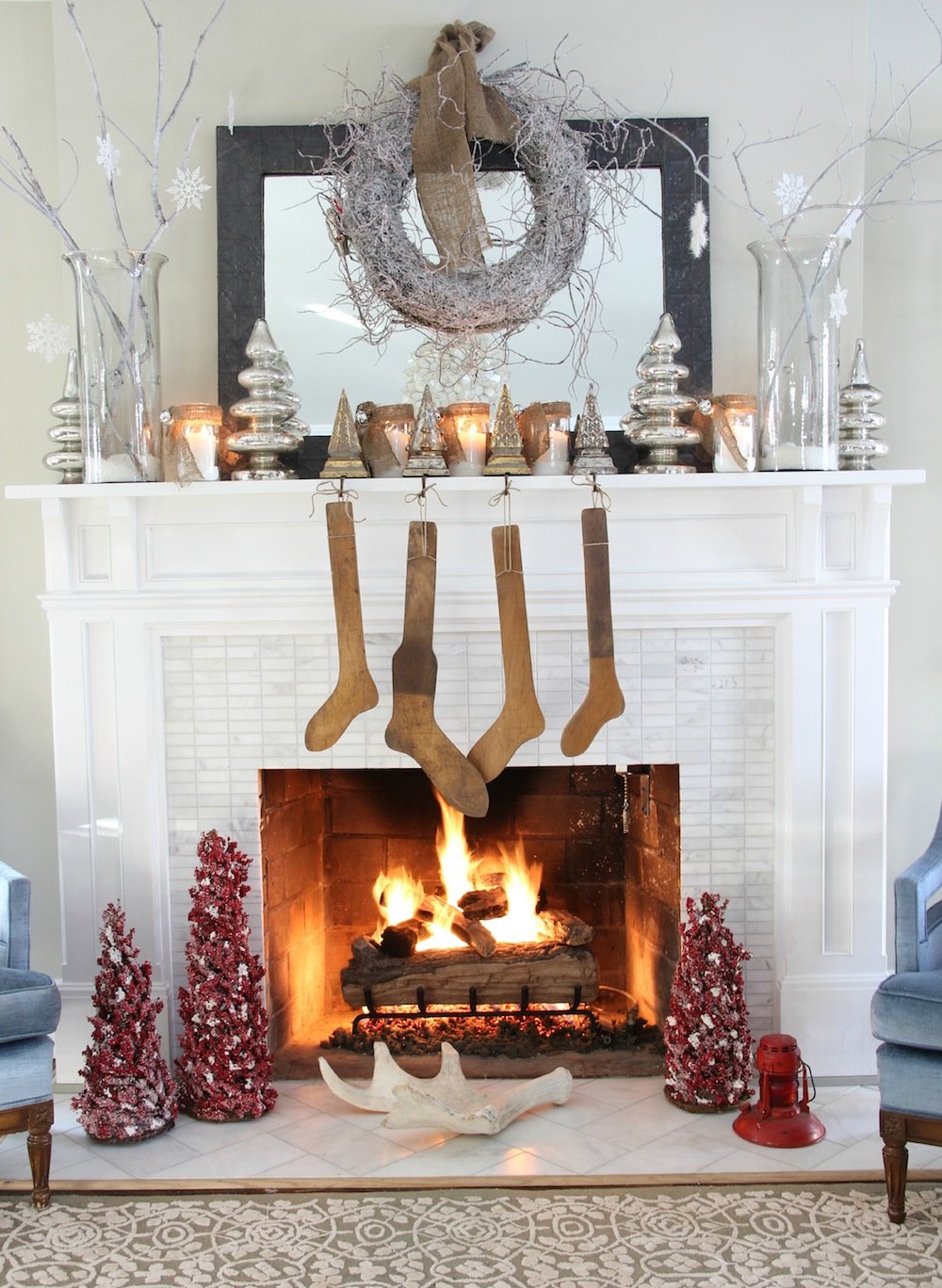 El lugar cerca de la chimenea está decorado de varias maneras encima: