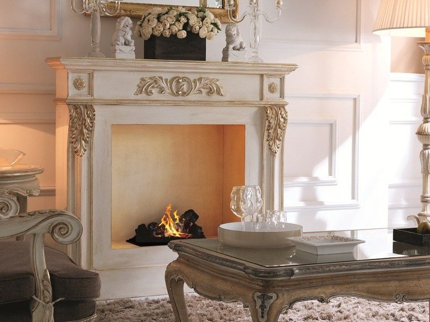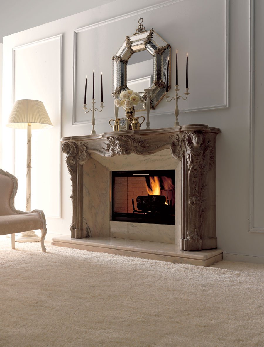 Tal hogar tiene una textura hermosa, se convierte en un elemento interior único, está decorado con tallas, elementos cincelados volumétricos e incrustaciones.