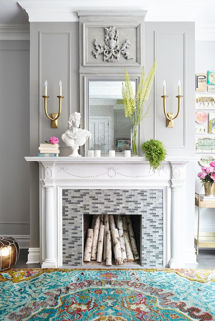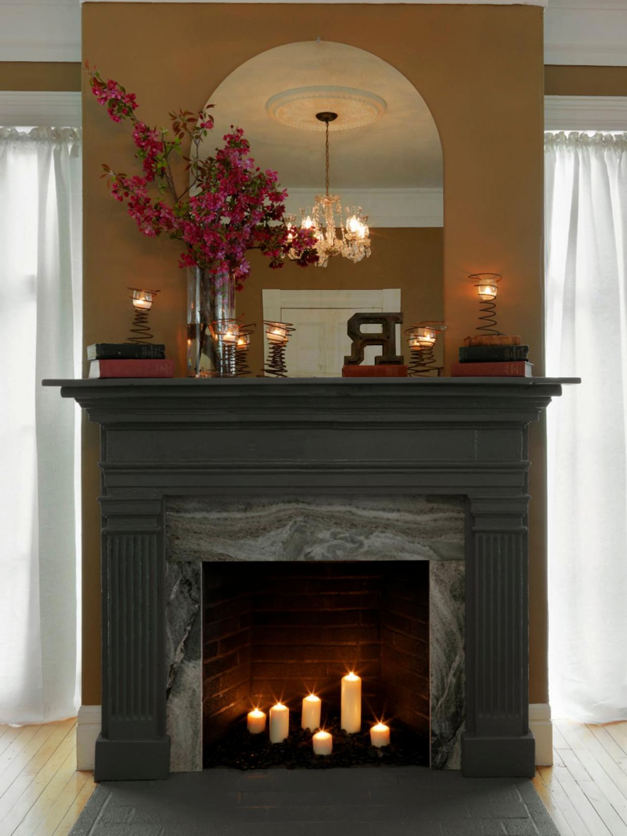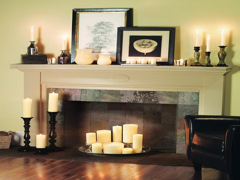 velas: se colocan velas gruesas dentro de la chimenea falsa, que pueden ser perfumadas;