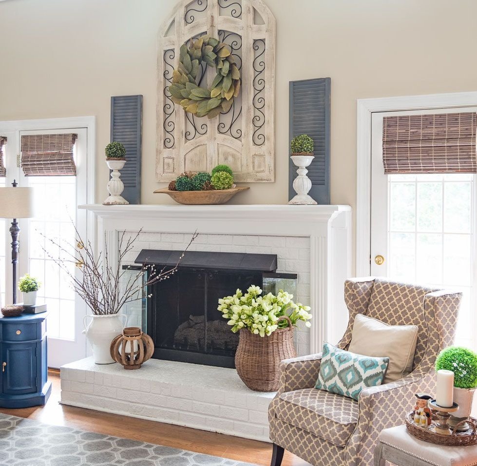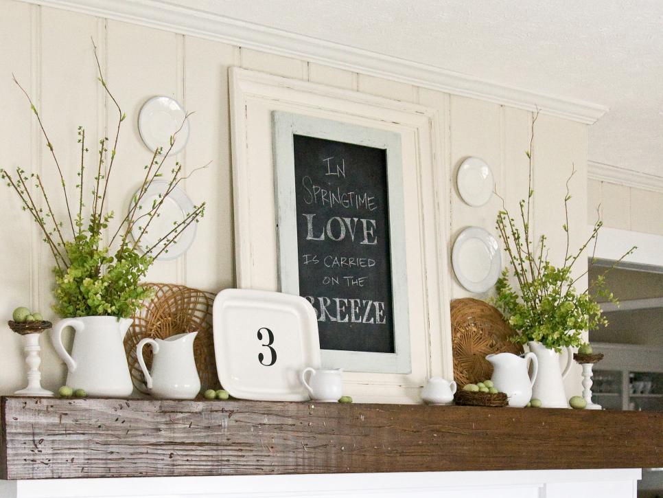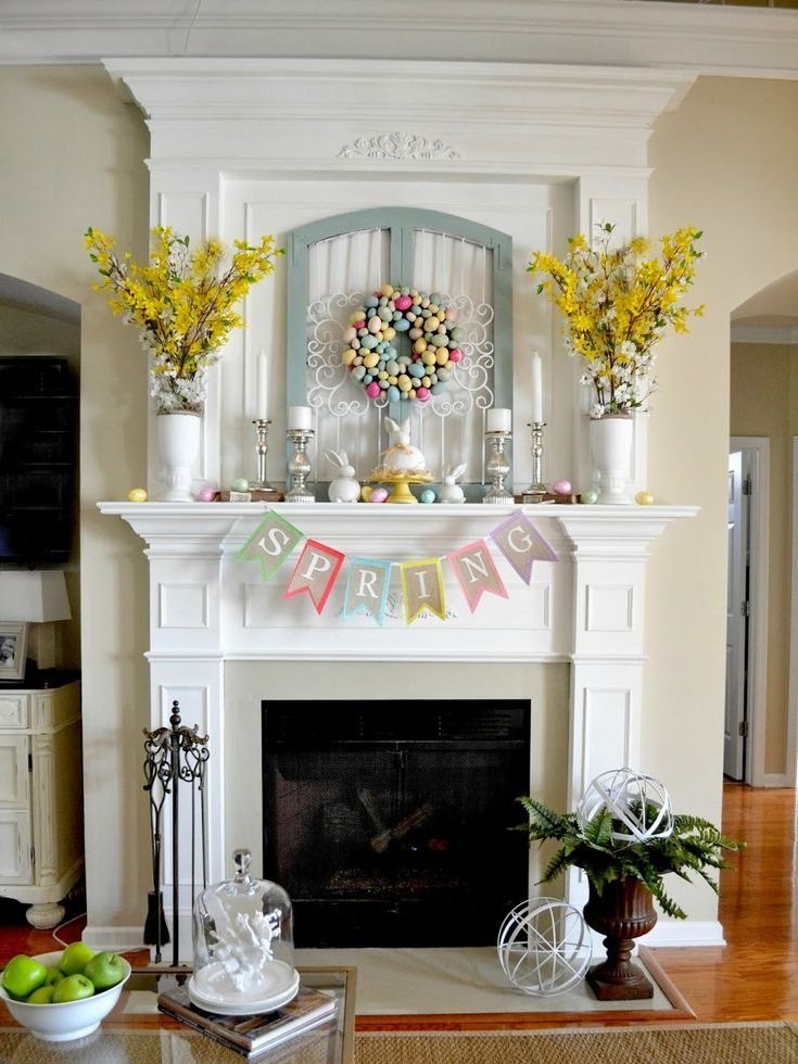 La primavera llena la casa de frescura, porque el hogar primavera-verano está decorado con primaveras en jarrones, tulipanes o narcisos cultivados independientemente en macetas con ramas de sauce esponjosas, plantas artificiales, coronas de hierbas.Una pajarera, figuras de pájaros, fotografías de la naturaleza del despertar se colocan en la repisa de la chimenea; al lado hay una hermosa herramienta de jardín. Decorando la chimenea con pequeños paneles de láminas de madera, con imágenes de sakura floreciente, las ramitas de sauce crearán un interior orgánico. Para el diseño de verano, es adecuado un tema náutico con conchas, modelos de veleros, fotos de puestas de sol sobre el agua.