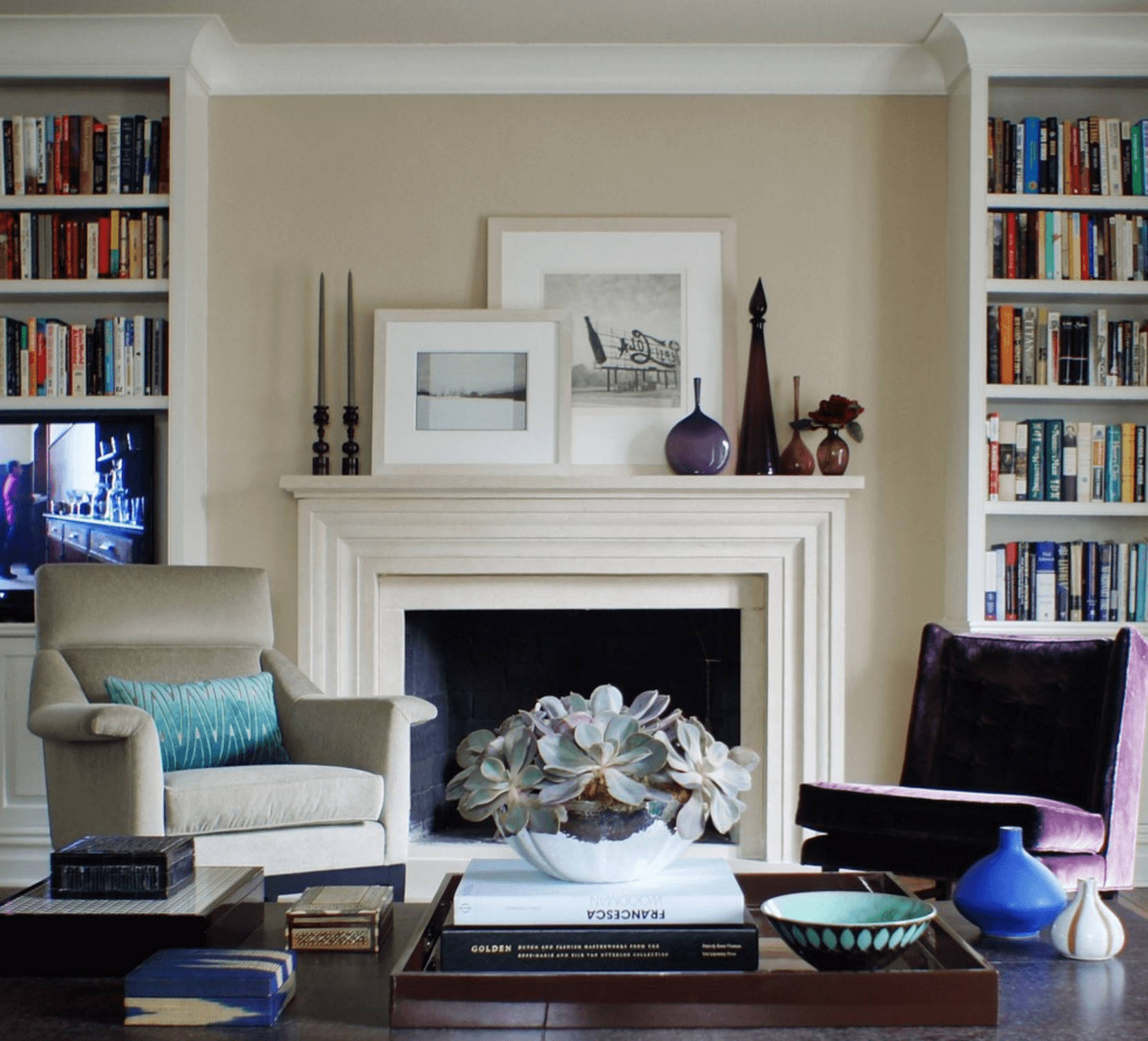 fotografías en marcos, recuerdos, figuritas: se colocan en un estante sobre la chimenea, en nichos en la pared;
