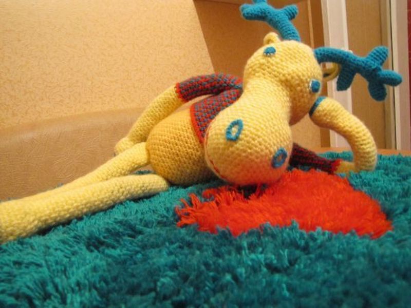 Para hacer que el bebé sea más interesante, se bordan caras divertidas, manijas, piernas, patas en cada "ladrillo".