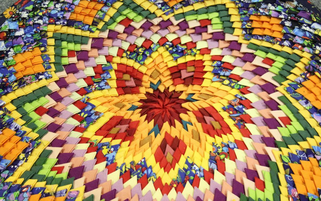 El gran aro de plástico, originalmente diseñado para gimnasia, es ideal para crear un tapete redondo de patchwork. Para un producto cuadrado y rectangular, se utiliza un marco de madera.En lugar de un aro, a veces se usa un círculo de cartón corrugado.
