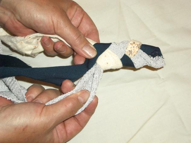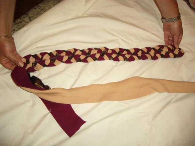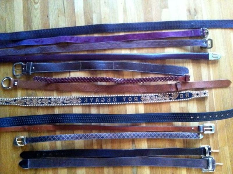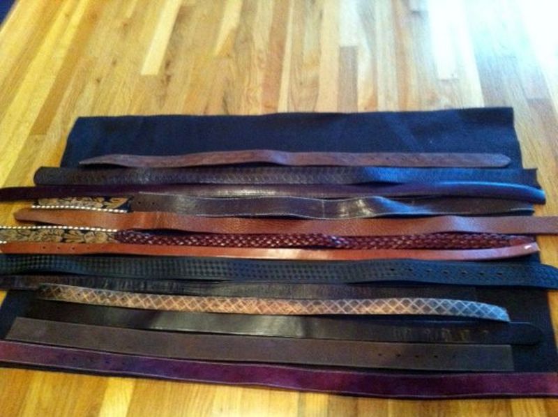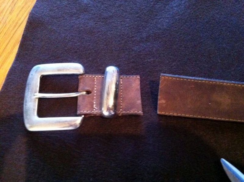 Deben quitarse las hebillas, cortar los cinturones para que tengan la misma longitud. Se hacen agujeros en los bordes de los lados largos cada tres o cuatro cm. Se pasa un cordón a través de ellos en forma transversal, uniendo las partes.Alternativamente, las correas se sujetan con una grapadora con grapas.