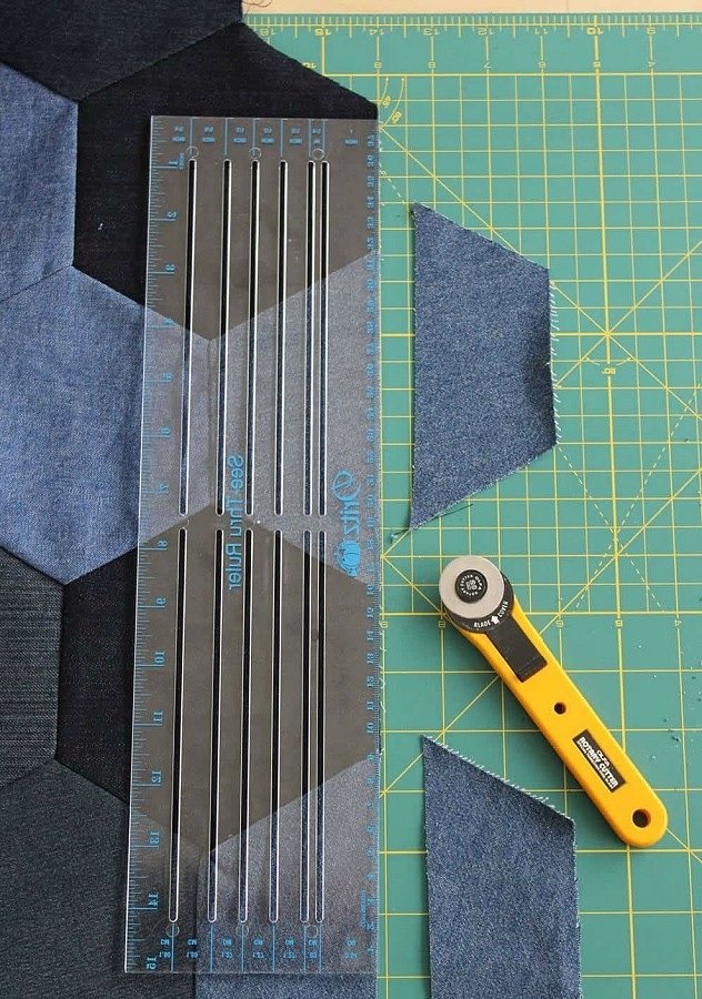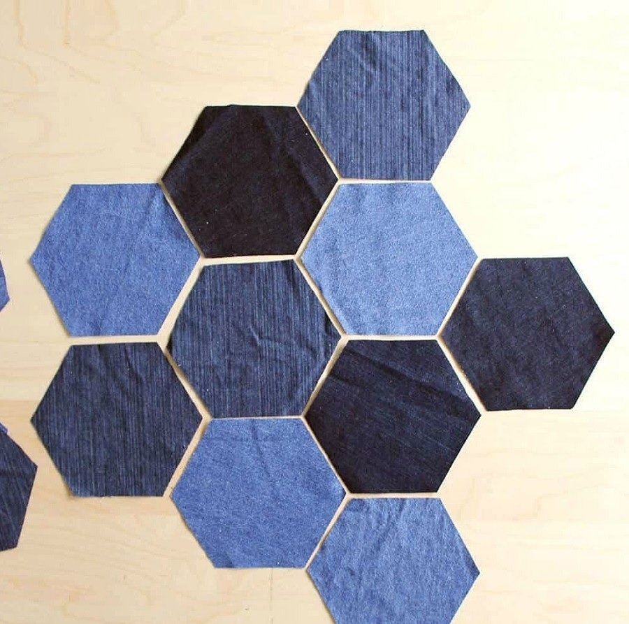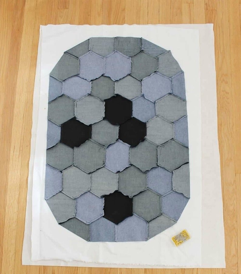 Para coser una alfombra usando la técnica de patchwork, los jeans tomarán mucho. Todo debe cortarse en cuadrados, rectángulos, hexágonos del mismo tamaño, conectando usando una línea manual o de máquina. Un sol de alfombra único saldrá si las piezas se cortan de jeans en forma de sectores; dependiendo del tamaño del "sol", necesitarán de seis a doce piezas. Un círculo está cosido en el medio.