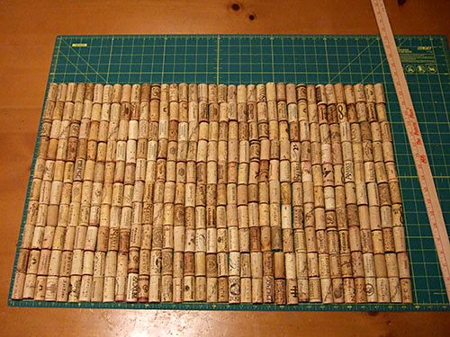 Los corchos se lavan en agua jabonosa con lejía y se dejan secar. A continuación, cada corcho se corta en dos mitades, si las secciones son desiguales, se lijan con papel de lija. Después de pegar los corchos sobre la base de un tamaño adecuado: en filas, en un patrón de tablero de ajedrez, en espiral, etc. El producto se hace en forma de círculo, ovalado, cuatro hexagonales, secado al sol.
