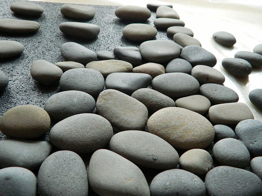 guijarros lisos, aproximadamente del mismo tamaño, también son adecuados para la ropa de cama en la ducha, la alfombra de la puerta original en el apartamento, una mansión privada;