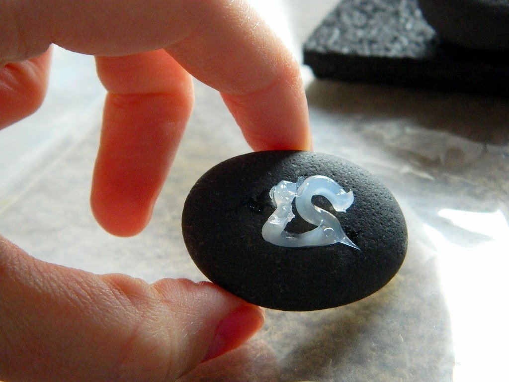 Todo tipo de patrones, inscripciones se presentan a partir de guijarros de diferentes colores, tamaños. Para la fabricación, necesita una cantidad suficiente de piedras planas, una pistola adhesiva, una base hecha de caucho, textil, corcho, etc. Es importante elegir todos los detalles en forma, tamaño, para que no haya espacios grandes.