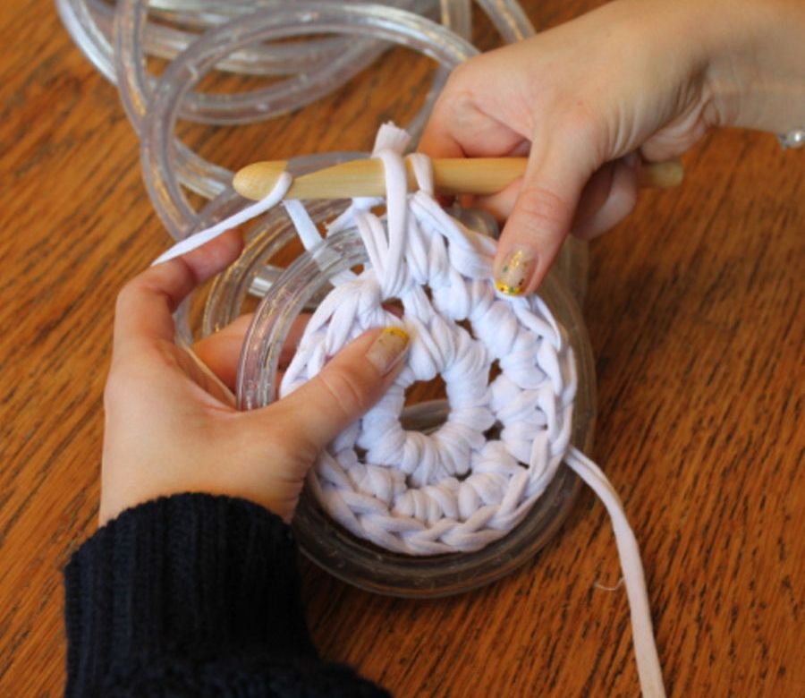 Los restos de todo tipo de textiles de camisetas viejas, pantalones y medias son abundantes en todas las casas; por lo general, se tiran y el tejido de una alfombra le dará una nueva vida a esos desechos;