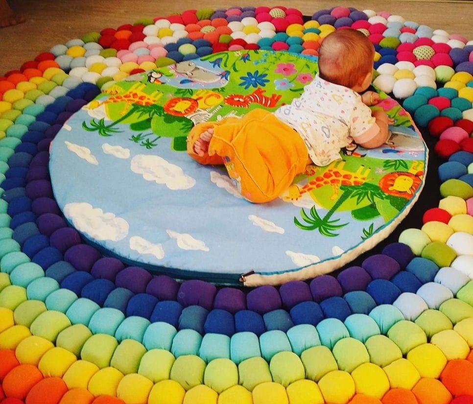 Hacer una estera de rompecabezas en desarrollo es una tarea laboriosa, pero el resultado será único. Para su implementación, se requiere goma espuma, tejido de punto, hilos, agujas, tijeras. Los detalles similares a los elementos del juego Tetris se cortan de la goma espuma, se cose una cubierta de la forma correspondiente en cada uno de ellos. Todas las partes están hechas para que, en la forma "ensamblada", el producto no se descomponga en componentes.