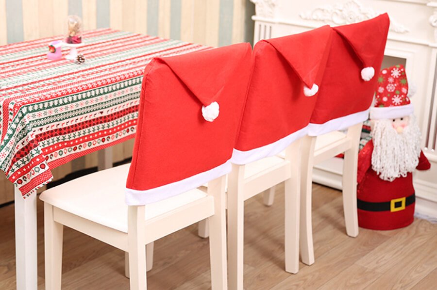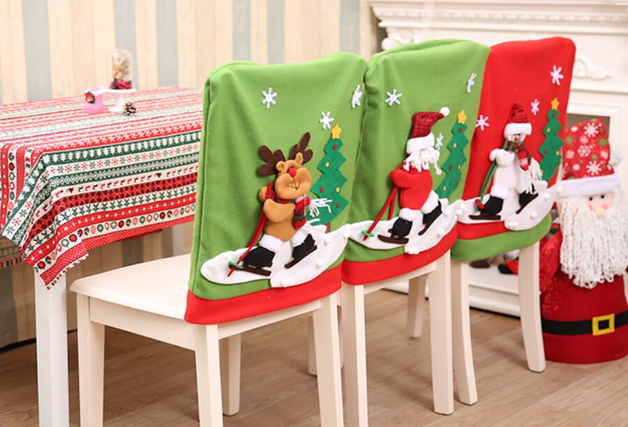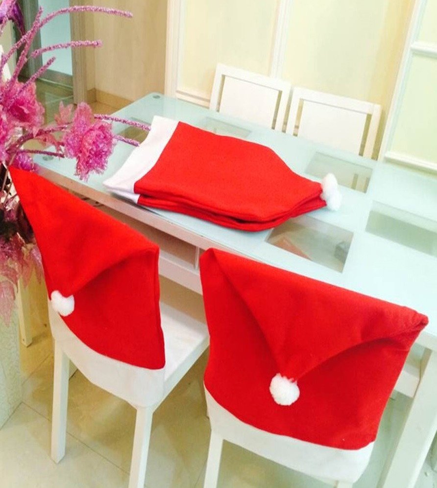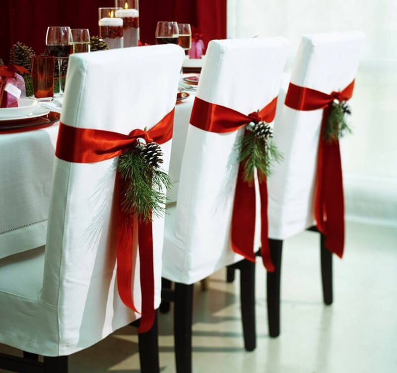 El proceso de hacer una cubierta festiva por su cuenta no es diferente de crear una envoltura en una silla con respaldo. La principal diferencia es el costo de los materiales. Las sillas deben enfatizar el ambiente festivo, por lo que están decoradas con una variedad de elementos decorativos: lazos, cintas, patrones. Tales envolturas se usan en banquetes y ceremonias. La ocasión para crear una envoltura festiva puede ser eventos como Navidad, Año Nuevo, fiestas tradicionales, recepciones, cumpleaños, aniversarios. La cubierta de Año Nuevo debe estar decorada con árboles de Navidad, "sombreros de Papá Noel". Se recomienda seleccionar los textiles más caros, en colores brillantes. Pero cualquier tela más o menos elegante servirá. Es apropiado usar cortinas y tul para el material de costura. A veces se crea velcro en el estuche para acomodar varias aplicaciones.