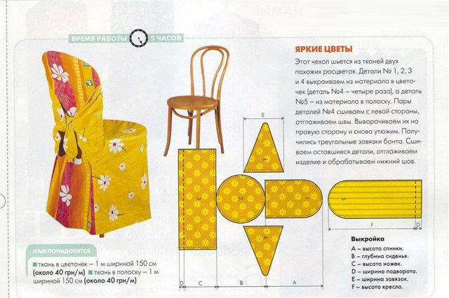 Con la ayuda de un patrón confeccionado, puede practicar y hacer patrones, ajustando y cosiendo una cubierta para una cierta variedad de sillas.