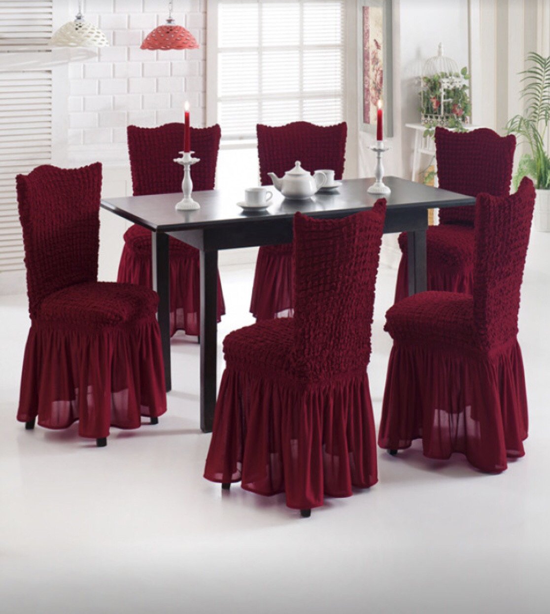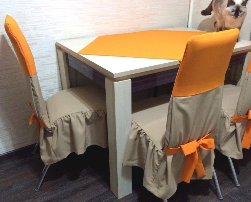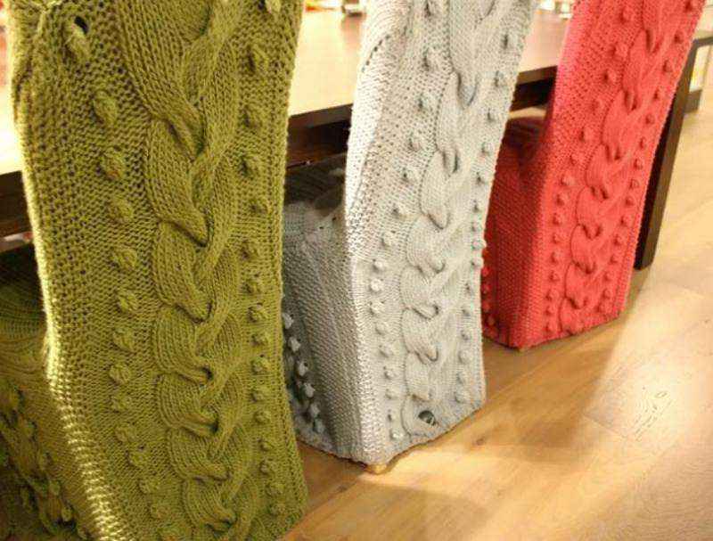 Hay muchas más ventajas que desventajas. La primera cualidad que vale la pena destacar es el bajo precio. Además, la cubierta se puede hacer con sus propias manos. Para esto, no es necesario poder coser. Es suficiente envolver la silla con un paño y dejar que cuelguen los bordes ásperos sin tratar. La cubierta protege el asiento de la suciedad, el agua y la grasa. Este es un matiz fundamental para habitaciones como una cocina. La apariencia del interior se puede variar o cambiar usando cubiertas. En invierno, es preferible usar tonos fríos, y en verano, cálido o viceversa. Para cada temporada, es mejor hacer cubiertas de diferentes grosores. Otro propósito funcional es la protección contra las mascotas: de sus "huellas" y garras. No es necesario lavar una capa gruesa; una limpieza a fondo con un detergente y un cepillo es suficiente. Esto es algo práctico que puede ser elegante y hermoso.