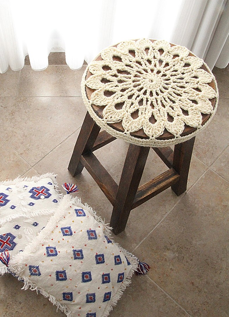 Tal producto es lo suficientemente fácil de lavar y, para unirlo, no requiere mucha experiencia. No se desliza sobre la superficie y es adecuado para sillas en las que se sientan los niños. Entre las técnicas de crochet, vale la pena resaltar una columna con tres, dos o un crochet doble, un crochet simple, un crochet doble, una puntada fuerte, un bucle de aire y una media columna. Aquellos con poca experiencia deben descubrir qué opciones son las más simples y dominarlas primero. Es necesario determinar el esquema y tejer, sin permitir la floración. Para una capa necesitarás aproximadamente 200 g de hilo, y esto es aproximadamente una madeja.Hay un esquema bastante simple para crear una envoltura redonda. Primero, se mide el diámetro de las heces. Luego los bucles de aire encajan, se cierran en círculo. A continuación, se hacen filas de diferentes bucles. El ángulo se nivela saltando uno de ellos. Al alcanzar el tamaño requerido, debe tejer los lados para una fijación confiable al asiento.