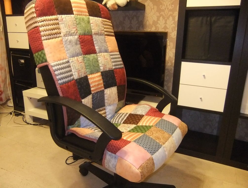 Se requerirá aproximadamente 1 m de tejido. Coser la capa es fácil, especialmente si la parte posterior tiene una forma estándar y no hay necesidad de colocarla debajo de los cinturones. Suficiente de dos piezas de tela y relleno. Ambos fragmentos están garabateados juntos. Se recomienda buscar material impermeable que sea fácil de limpiar y lavar. El relleno se toma lo más suave posible. Se están midiendo los muebles. En primer lugar, se determinan el largo y el ancho. Si la silla tiene una forma inusual, con una gran cantidad de tolerancias, entonces la forma más fácil de hacer la configuración correcta es unir la tela a la silla o al manto viejo y repetir con precisión su forma. El siguiente paso es crear un patrón y marcar el lienzo. Después de esto, la etapa final permanece: coser según los estándares.La capa debe aplicarse de vez en cuando a las heces para que no tenga que cortarse y rehacerse.