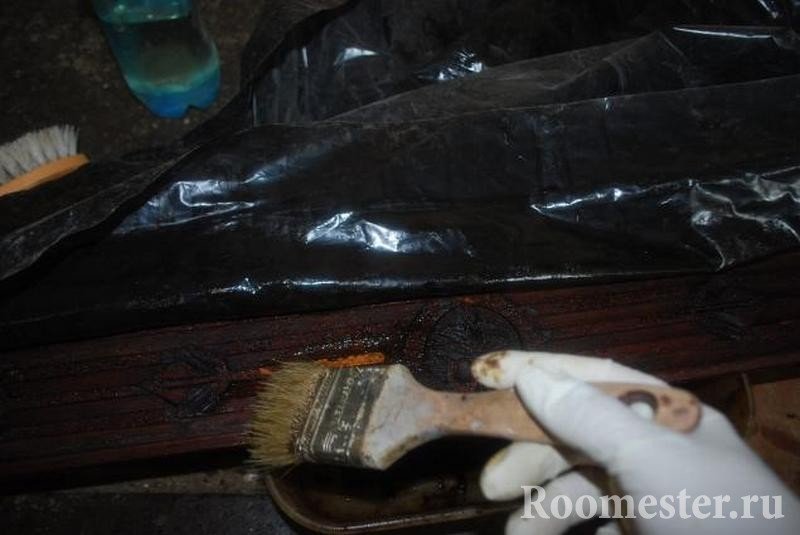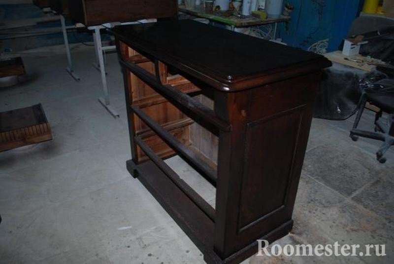 Una capa de barniz en toda la superficie de los muebles. Después del secado, otra capa o dos. Se puede reemplazar con terreno despejado.