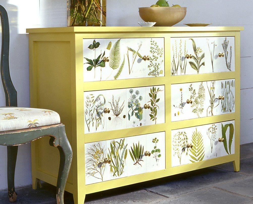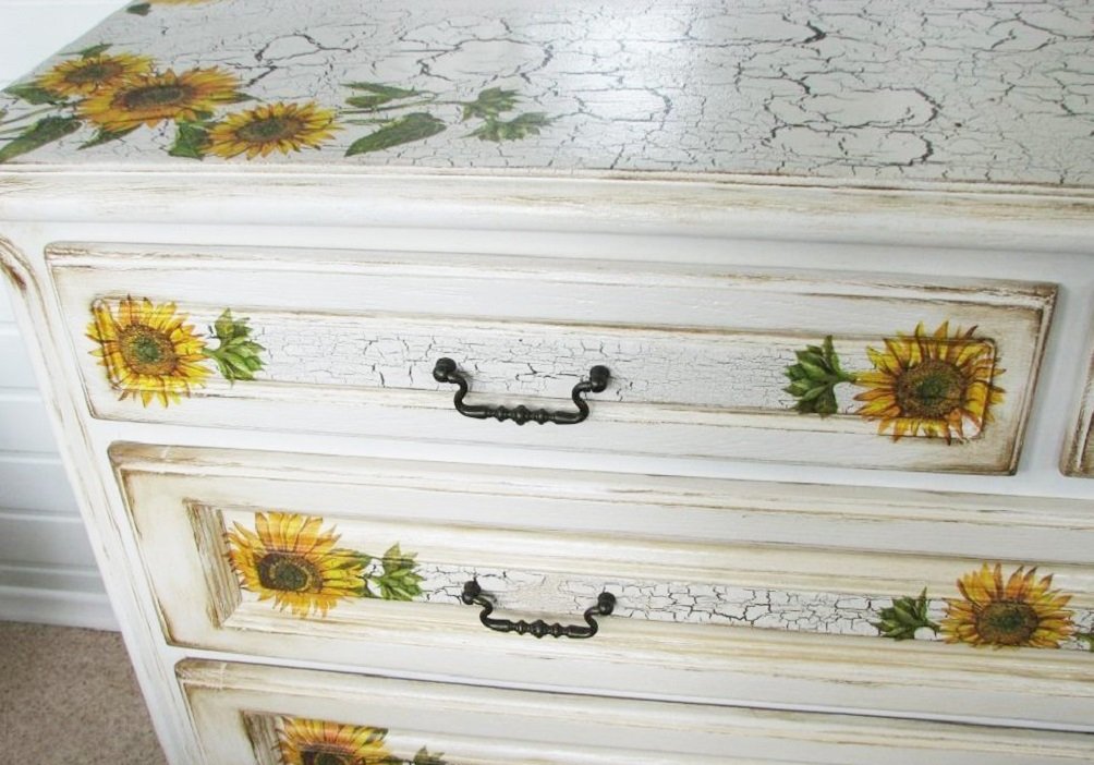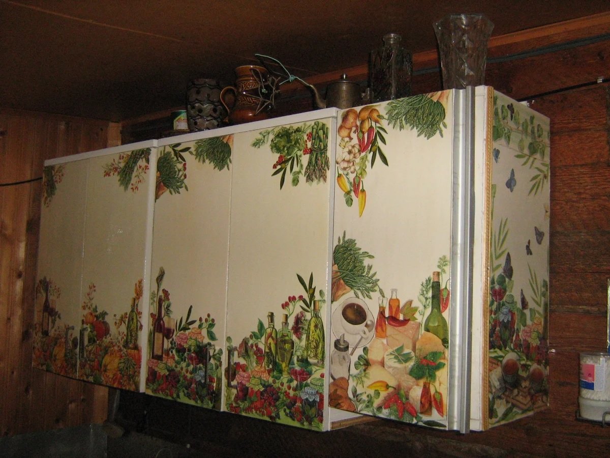 Puede transformar un gabinete de cualquier tamaño utilizando una variedad de herramientas improvisadas. Servilletas, imágenes en color, fondos de pantalla y otros elementos de papel son adecuados. Un mueble puede tener un aspecto envejecido utilizando la técnica de craquelado.