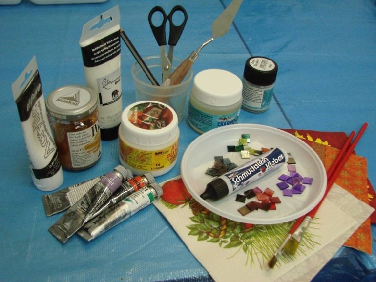 Un punto importante en el proceso de decoupage de muebles es la preparación de todo lo necesario para el trabajo. La comodidad del maestro, así como el resultado final, dependerán de esto.Para la creatividad necesitará las siguientes herramientas: