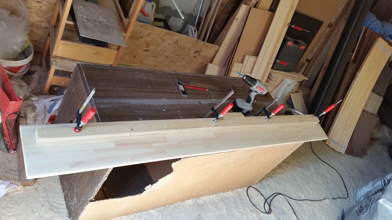 - Procedemos a cortar particiones horizontales. Para hacer esto, cortamos dos listones de 182 cm de largo de una tabla de 4 cm de espesor, y otros 6 - 86 cm de largo;