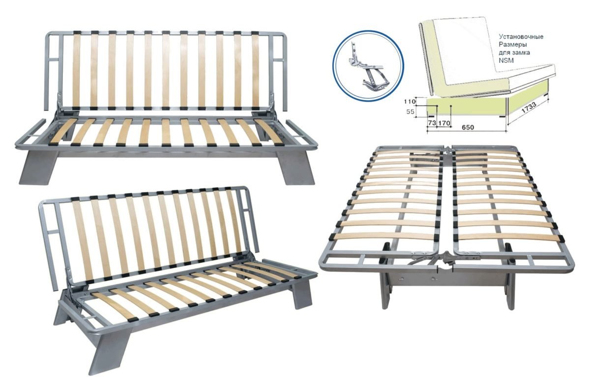 Comenzamos la colección de la base deslizante con el asiento. Deberá hacer dos diseños idénticos con listones que sujeten el colchón. Cortamos los reposabrazos de los tableros del aglomerado estrictamente de acuerdo con el tamaño del dibujo, luego derribamos el marco para ellos. Cuando todos los detalles estén listos, puede proceder con el montaje del sofá plegable Eurobook y la instalación de mecanismos de transformación. Solo queda para que sea suave y elegante con goma espuma y tapicería.