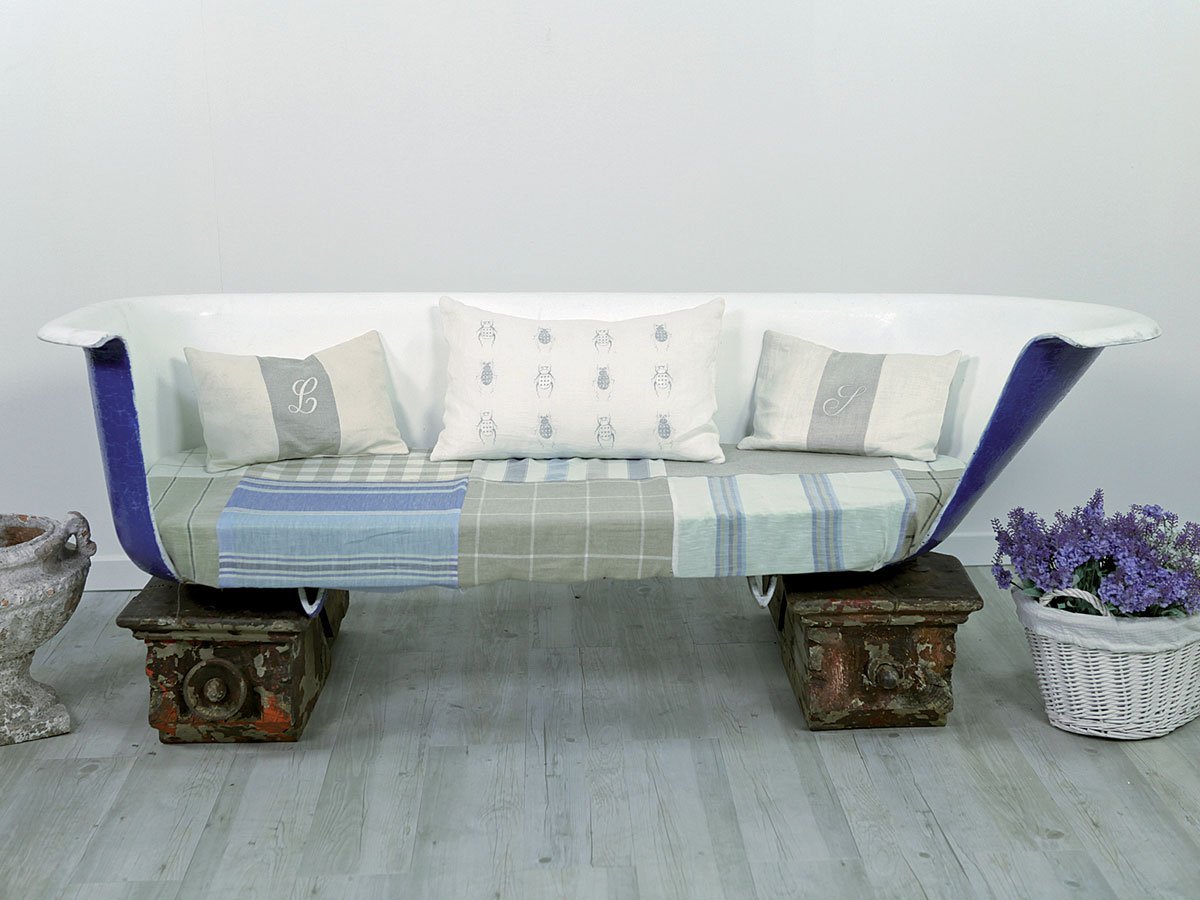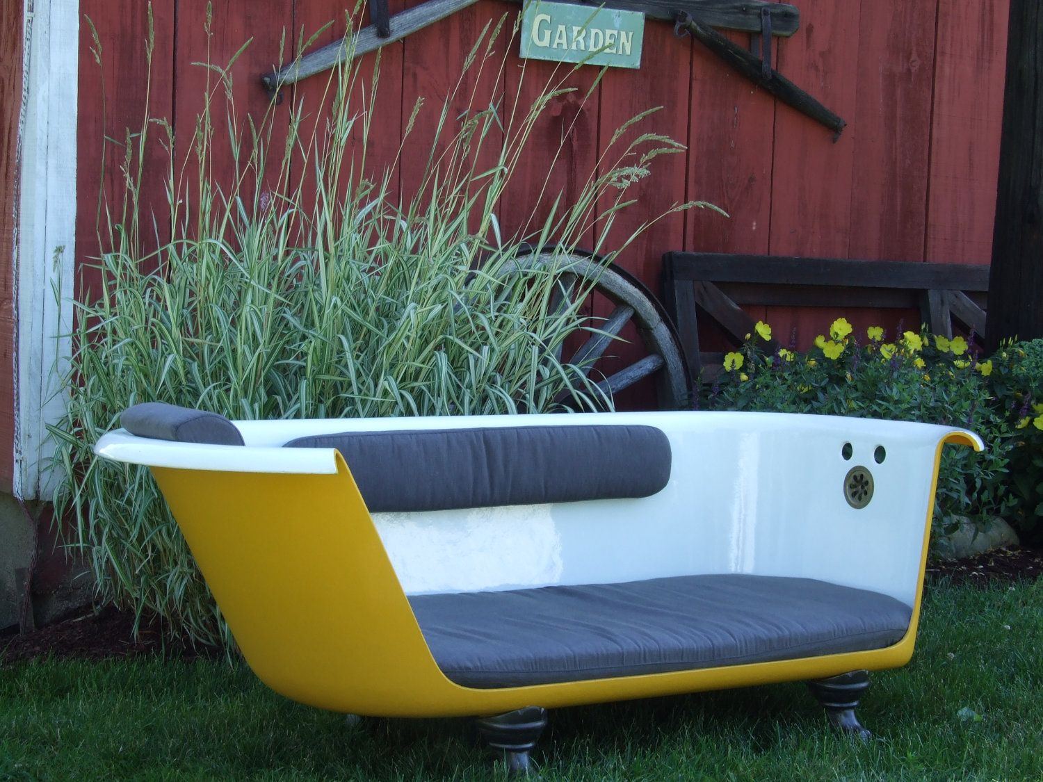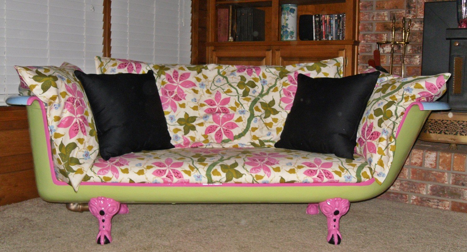 Se puede hacer un sofá interesante y creativo con una bañera vieja. La decoración funcional decorará cualquier habitación. Para la fabricación, es adecuado un recipiente de plástico, hierro fundido y metal. Un sofá particularmente elegante resultará de los modelos de estilo antiguo.