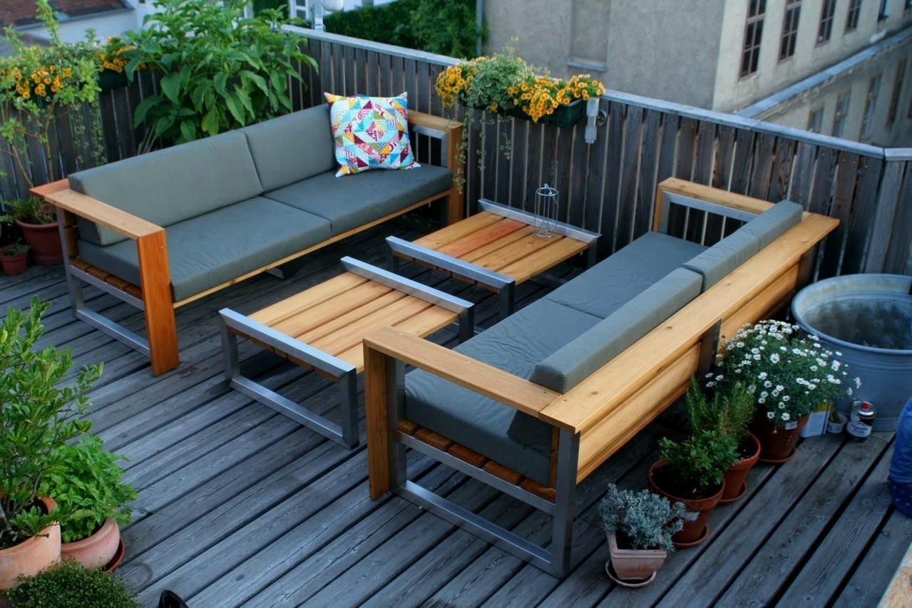 Para la terraza o terraza, puede hacer un sofá forjado original. La autoproducción requerirá ciertas habilidades para trabajar con material y equipo. El respaldo y los asientos se pueden cubrir con cojines de cuero.